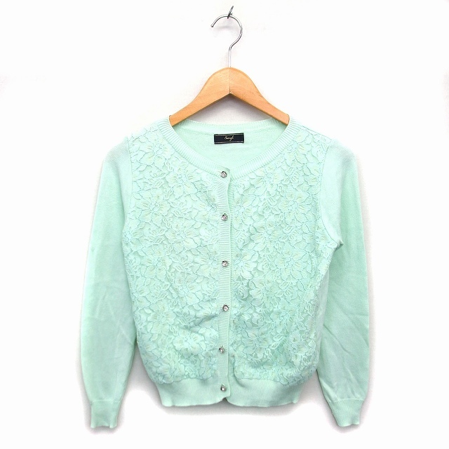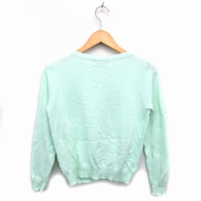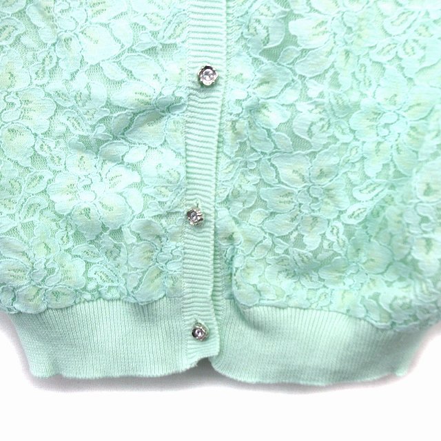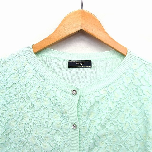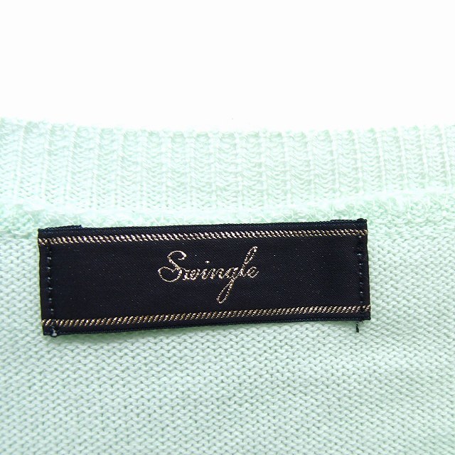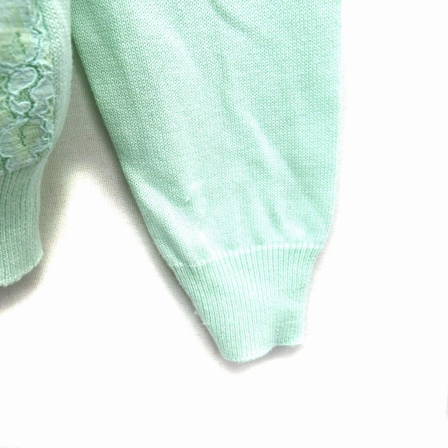 スウィングル Swingle カーディガン ニット ボートネック レース リブ コットン混 長袖 S パステルグリーン /NT4 レディース