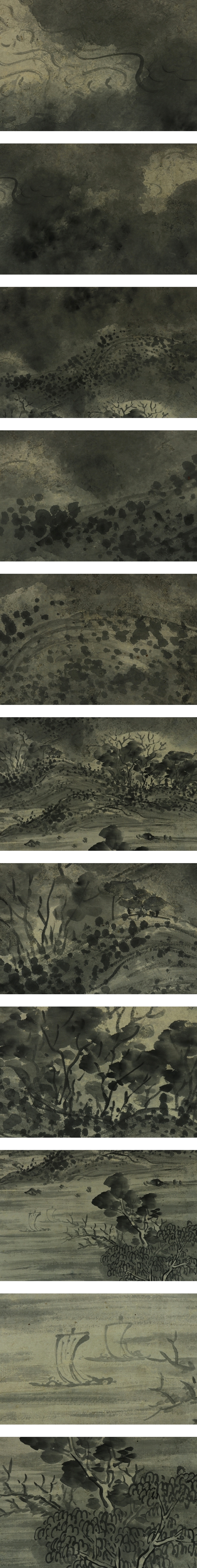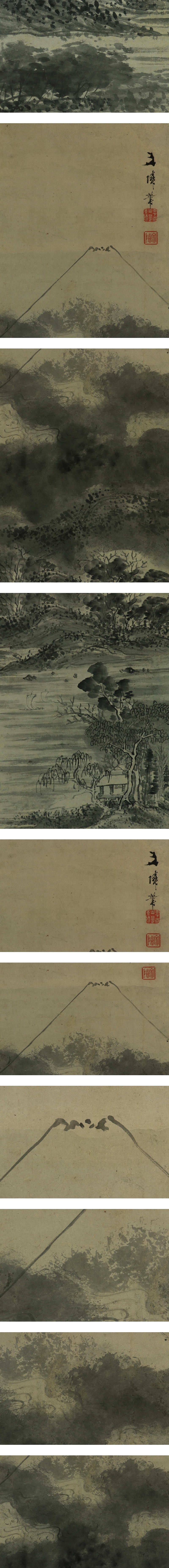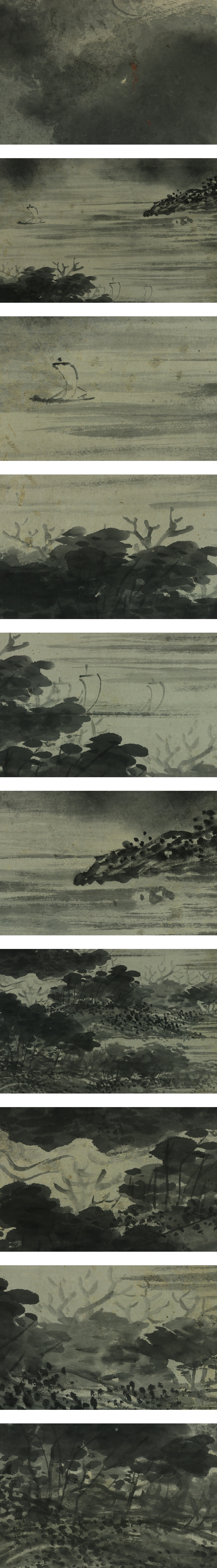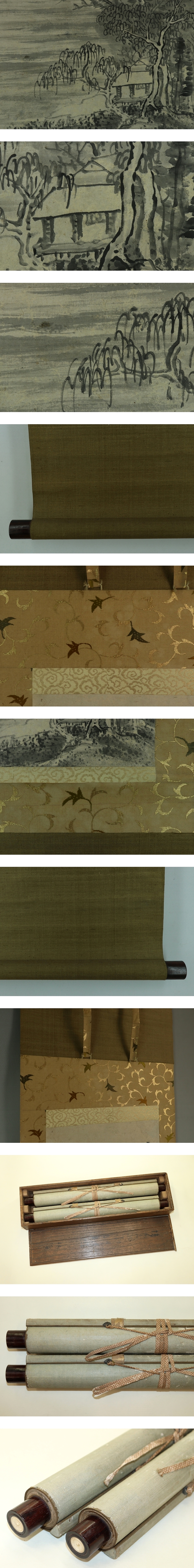 塩川文麟 しおかわ-ぶんりん(1808-1877) 江戸後期-明治時代の画家。 文化5年生まれ。岡本豊彦に学び、維新期の四条派の中心的な存在となる。 慶応2年京都の画家を集め如雲社を結成、明治京都画壇の基礎を築く。 門下に幸野楳嶺、野村文挙ら。明治10年5月11日死去。70歳。 京都出身。字は子温。通称は図書。号は雲章、泉声、木仏庵など。 本紙は、染み、汚れ、強い折れ、皺、虫食い、擦れ、ヤケがあります。 表装は、染み、汚れ、折れ、皺、くすみ、虫食い、破れ、ほつれ、紐に劣化があります。 【サイズ】 作品 横約28.5cm×縦約106cm 表装 横約39.5cm×縦約185cm |