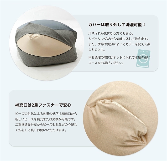 極小ビーズを使用した日本製のビーズクッション。 カバーリングタイプで洗濯ができます。 |