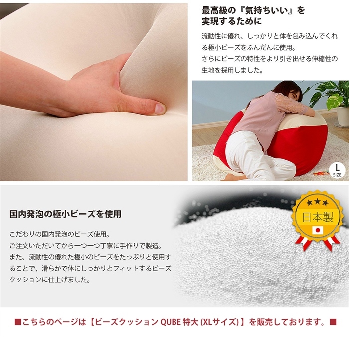 ※【同シリーズ】のリンクは当店のヤフオク店のページへ進みます。 ● 「QUBE」ビーズクッション M ● 「QUBE」ビーズクッション L ● 「QUBE」ビーズクッション XL ● 「QUBE」ビーズクッション XL 専用カバー ※このページは[「QUBE」ビーズクッション XL]を販売しております。 |