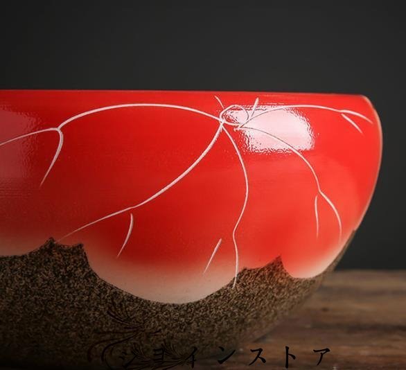 極美品★ 睡蓮鉢、綺麗な陶器製、メダカ、金魚、水性植物、手描きの逸品 ☆径41cm