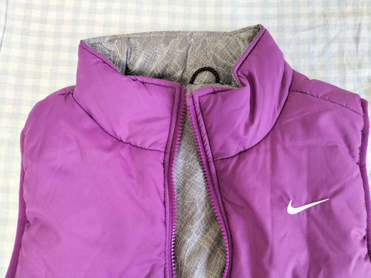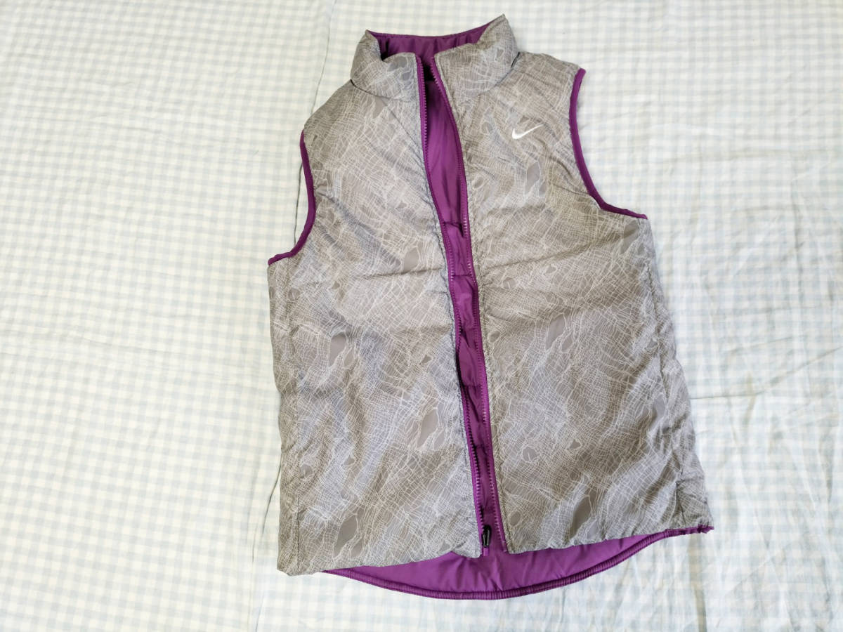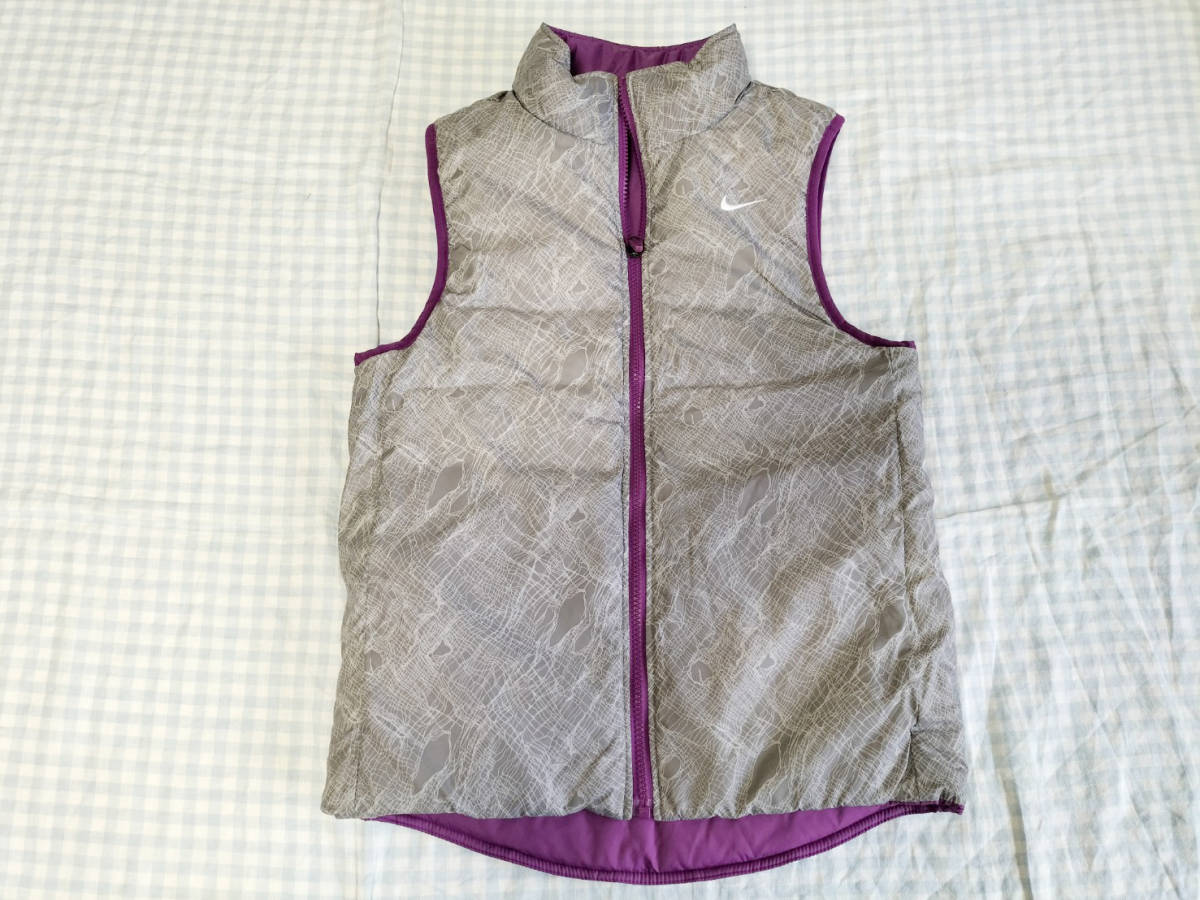 色は紫 裏はグレーの柄 リバーシブルで着られます。 素材:ポリエステル100% サイズS 肩幅36cm胸幅45cm着丈(前)60cm(後ろ)65cm 他にも洋服、バッグ、靴、小物、本を出品していますので見てください。
