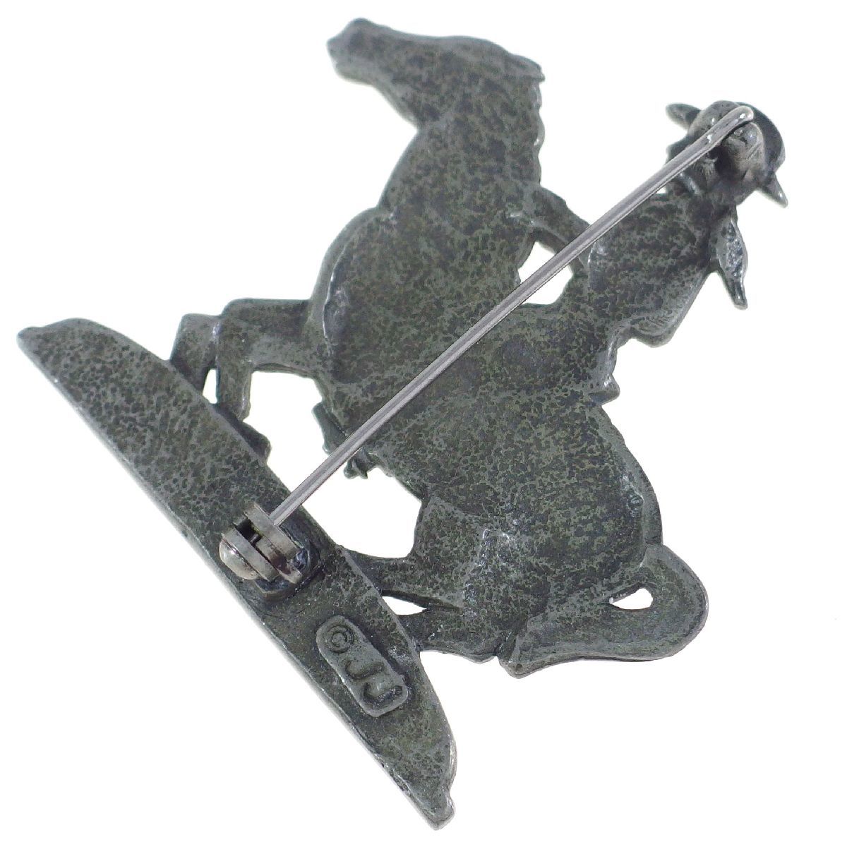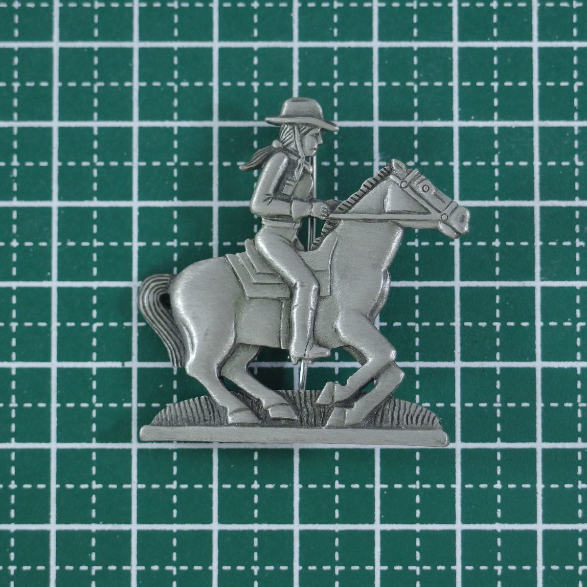 A8584◆【JJ】◆ 馬に乗る女性 カウガール * ホースモチーフ ◆ ピューター製 ◆ ヴィンテージブローチ ◆