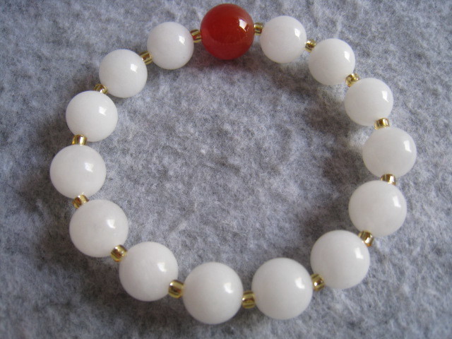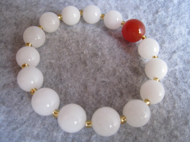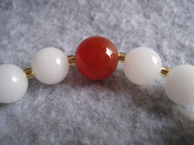 ◇ 石質   天然ひすい白翡翠珠約10.5mm 天然赤メノウ珠12mm 長さ約18㎝ 総重量約24.4g