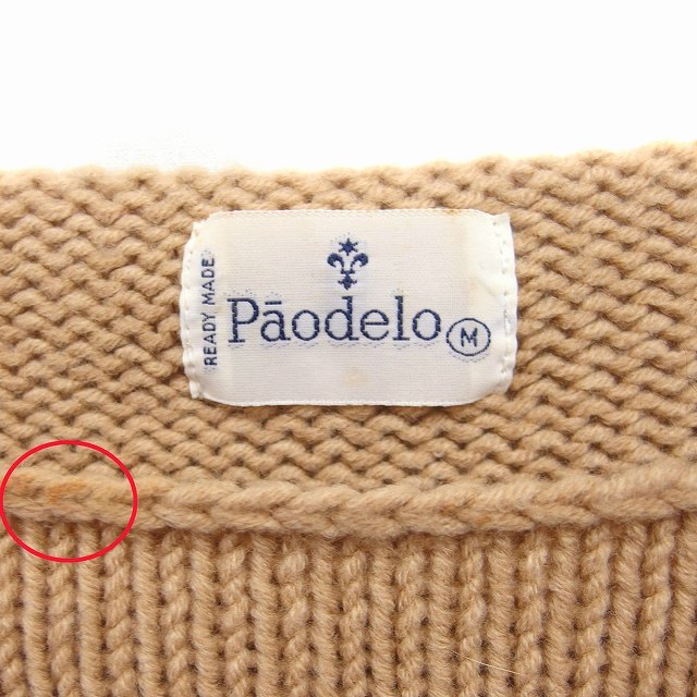 パオデロ Paodelo ニット セーター 半袖 ボートネック ミドルゲージ ウール混 M キャメル 茶 /FT44 レディース