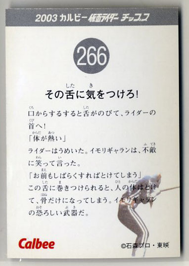 | ◆防水対策 厚紙補強 カルビー 仮面ライダーチップスカード(2003 復刻版) 266番 その舌に気をつけろ! トレカ 即決 | |