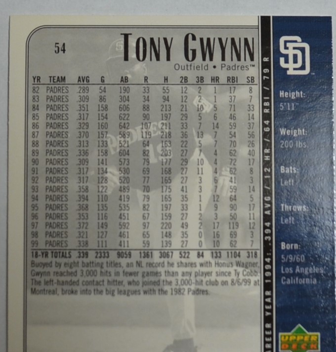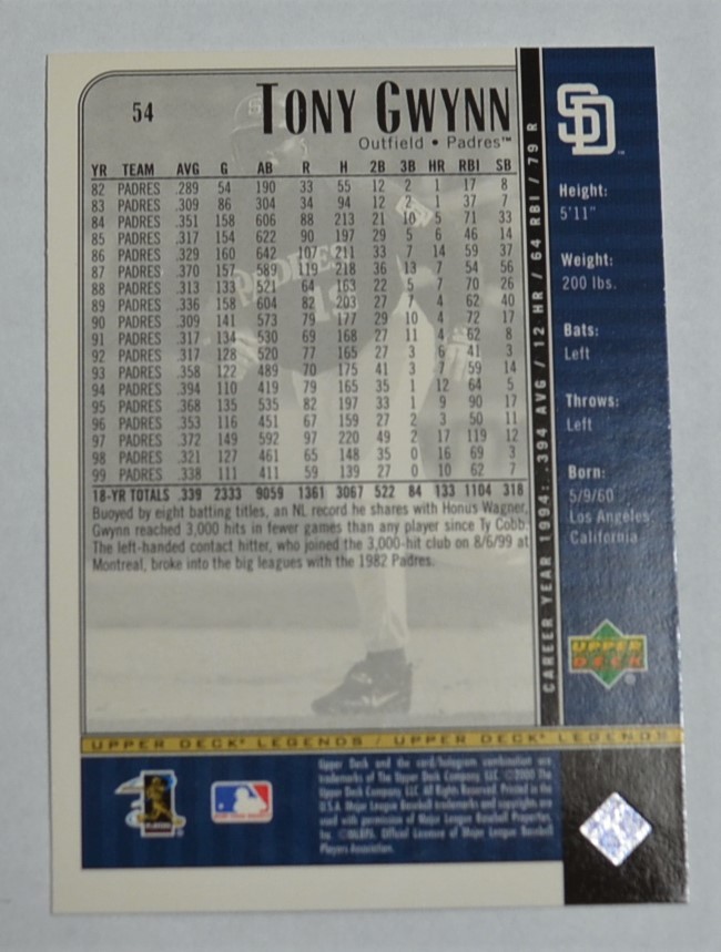 2000年  Tony Gwynn Upper Deck プロ野球 トレーディングカード
