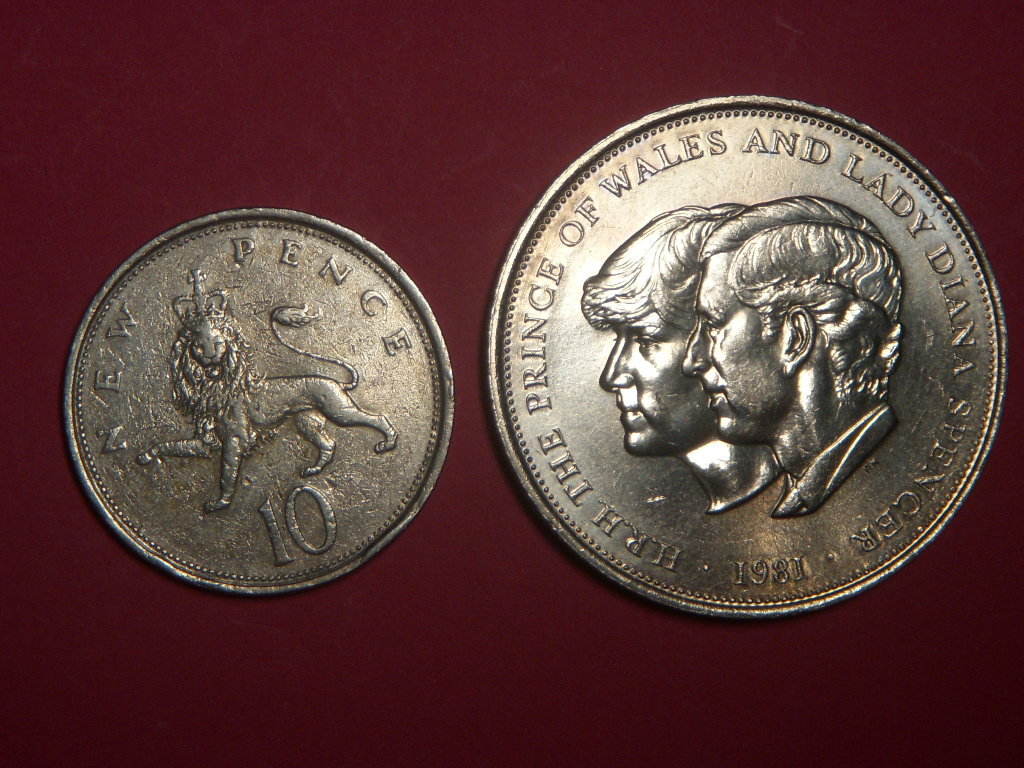 特価販売 ロイヤルミント③ エリザベス女王 記念貨1981年と大型10ペンス貨の2枚組 ダイアナ妃とチャールズ3世