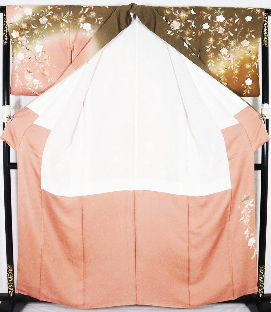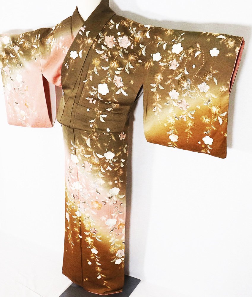 | 色・柄 | 辻が花訪問着 袷 丹後縮緬地 緑・薄赤紫・茶色暈し地 絞り辻が花 (写真では上手く色が出ない場合があります。ご了承下さい) |