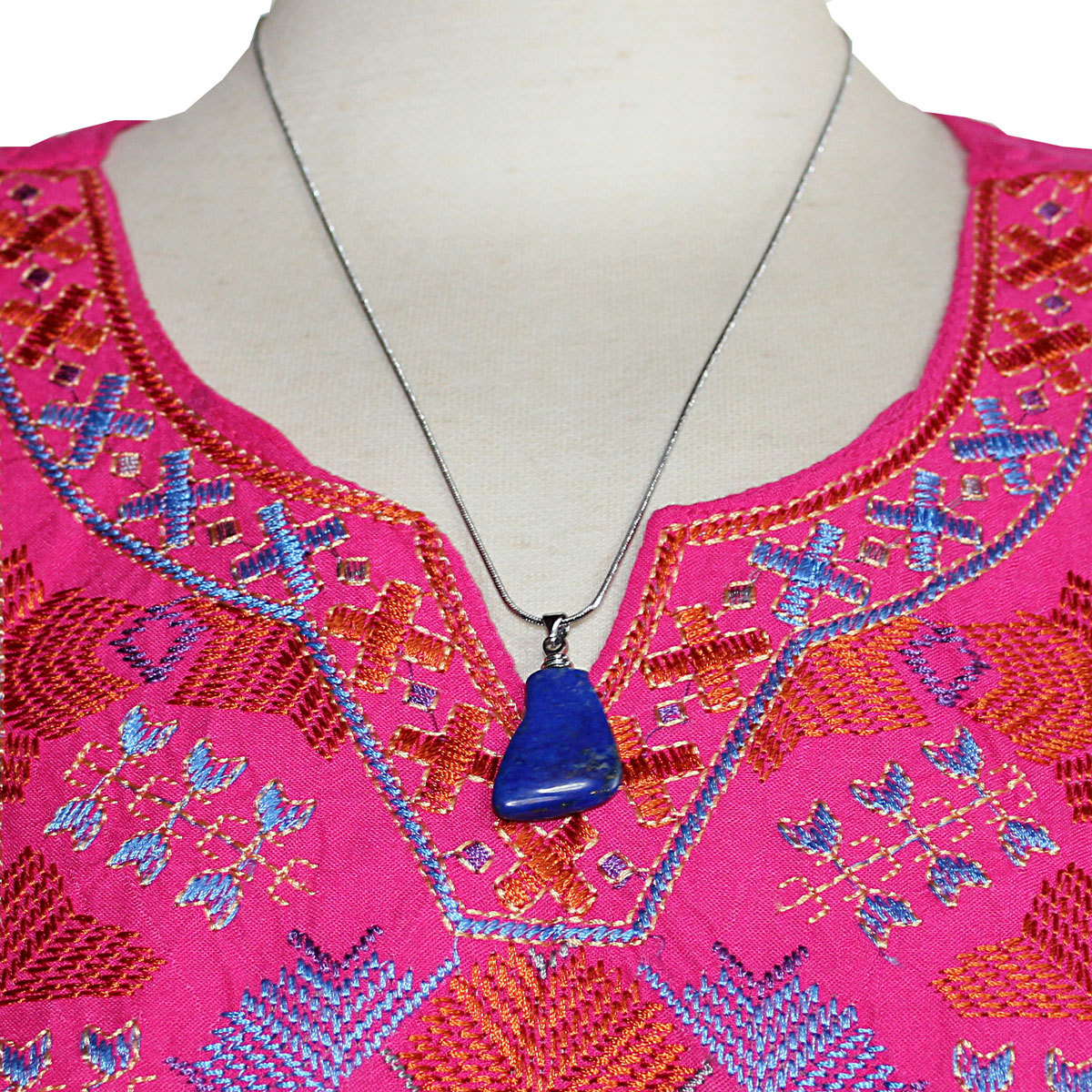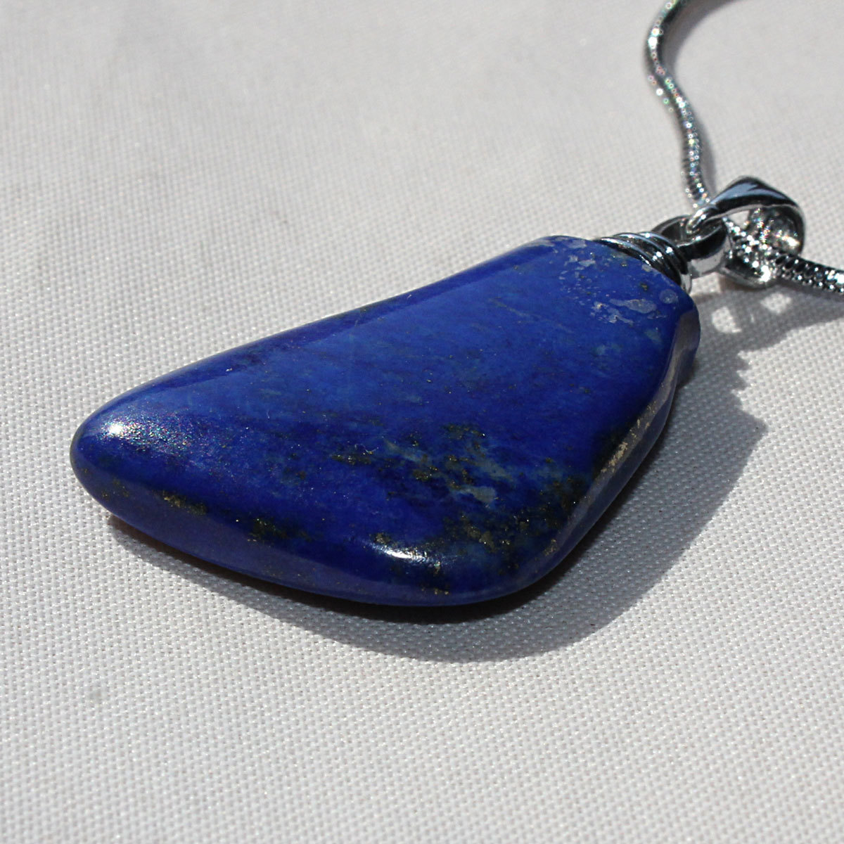 ●群青色の中に金色のパイライトと白いラインが流れる神秘的で水晶と共に最古のパワーストーンのラピスラズリのペンダントトップで、カジュアルな活動的な装いでのお出かけの胸元に、また”幸運の石”・”知性の石”としてのパワーをいつも身近に、バッグに入れてお供にどうでしょう。