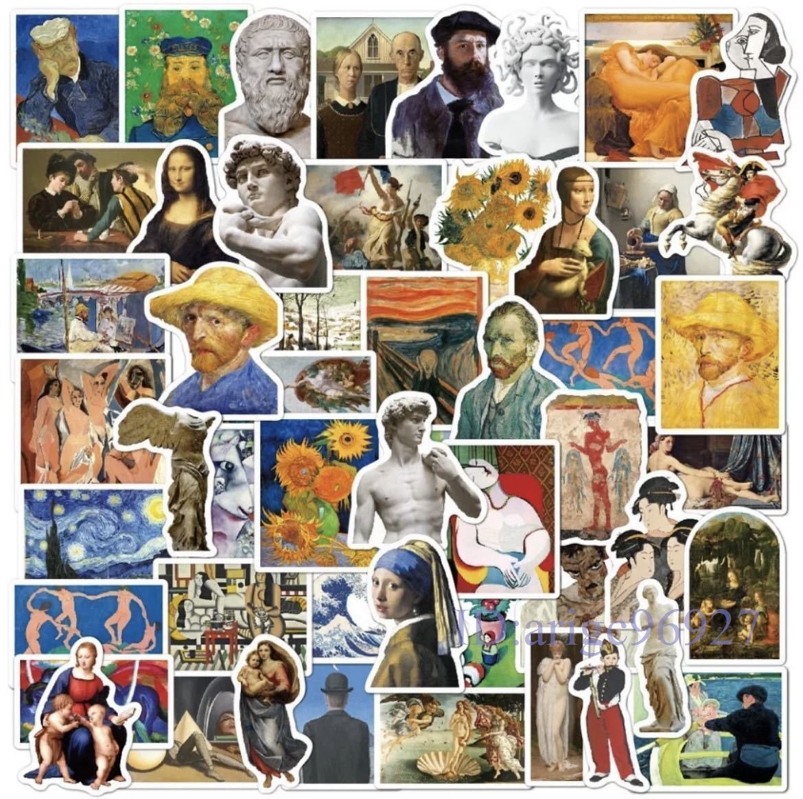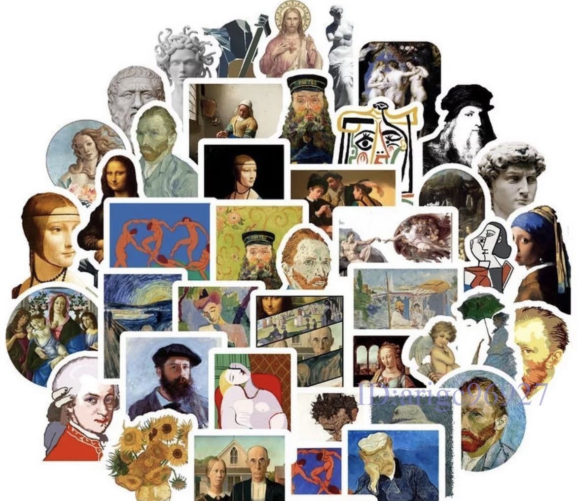 X310☆新品50枚セット 有名アートステッカー ステッカーボム 画家 音楽家 油絵 絵画 ステッカー シール パソコン 防水加工