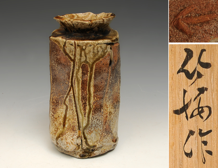 竹梅作 伊賀花生 花入 花瓶 花器 花生 共箱 昭和43年作 茶道具 華道具 現代工芸 |