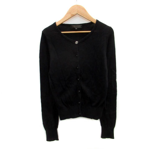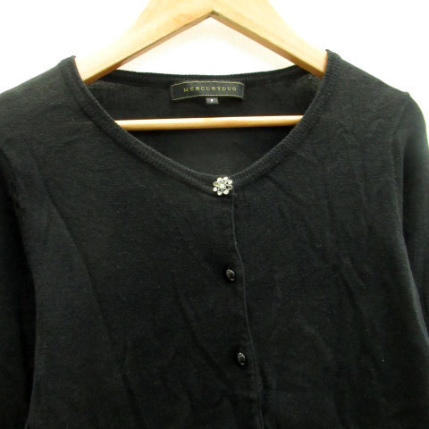 マーキュリーデュオ MERCURYDUO カーディガン ミドル丈 ラウンドネック 無地 ビジュー F ブラック 黒 /MS38 レディース