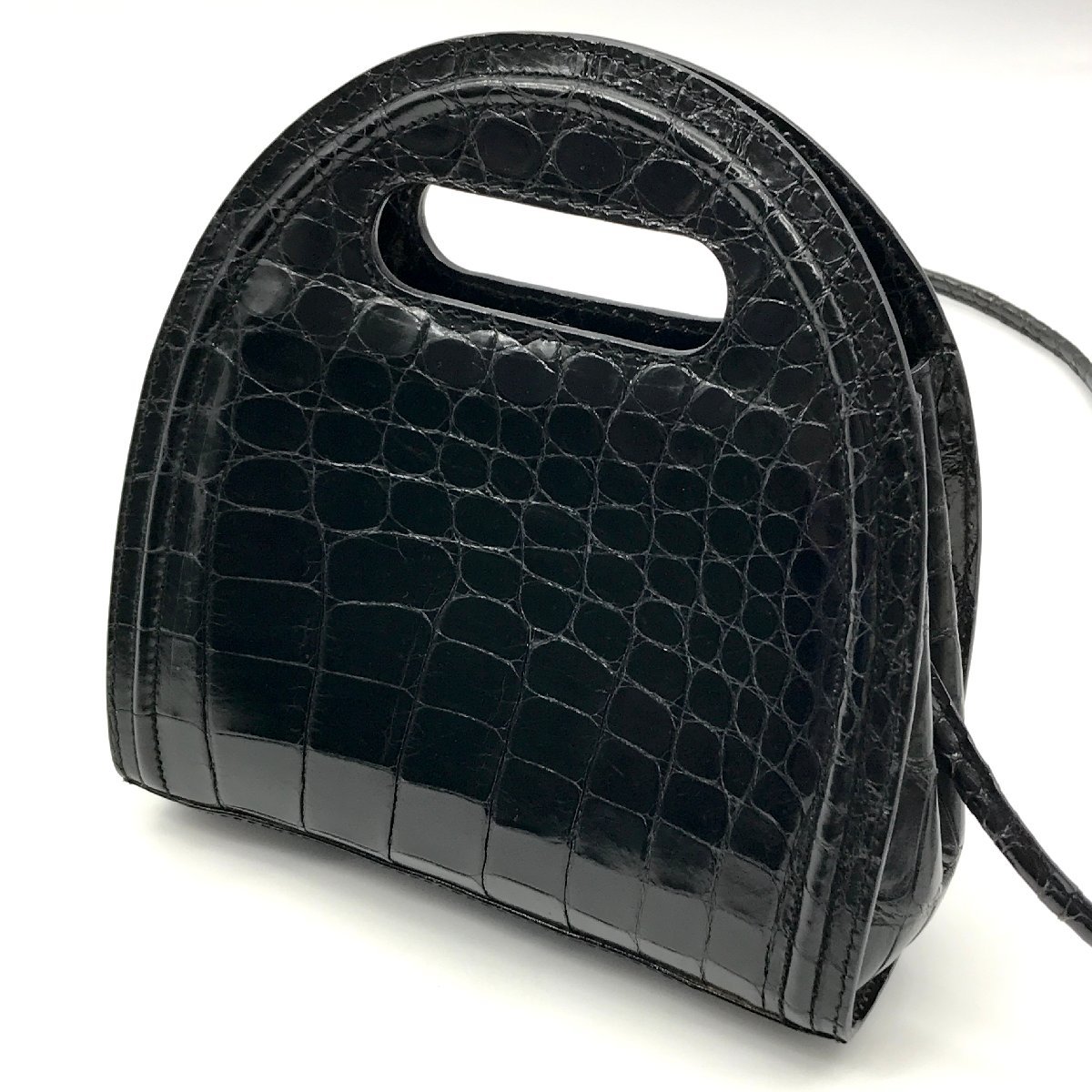 GUCCI グッチ 本クロコ ロゴ 2WAY ミニ ハンド ショルダー バッグ ブラック 美品 M8545 | |||