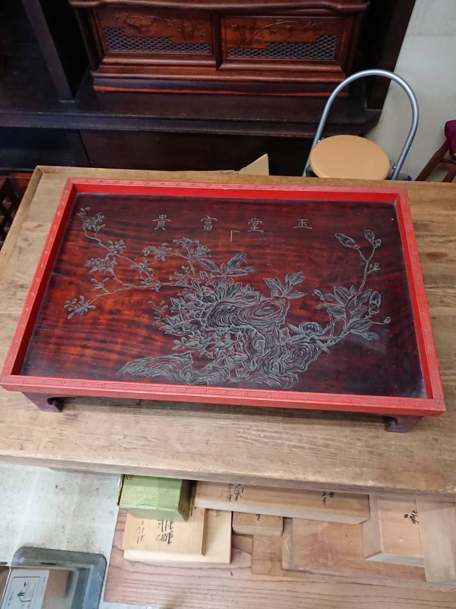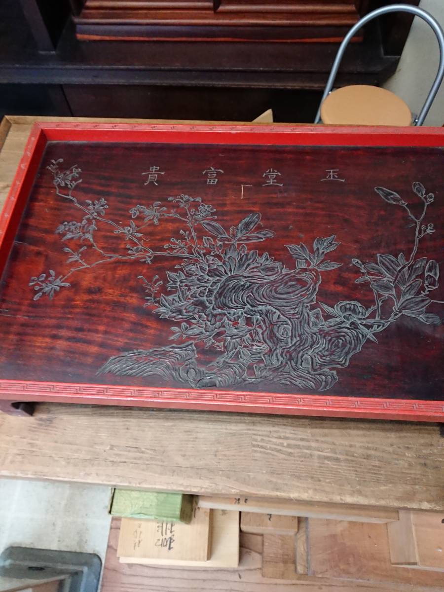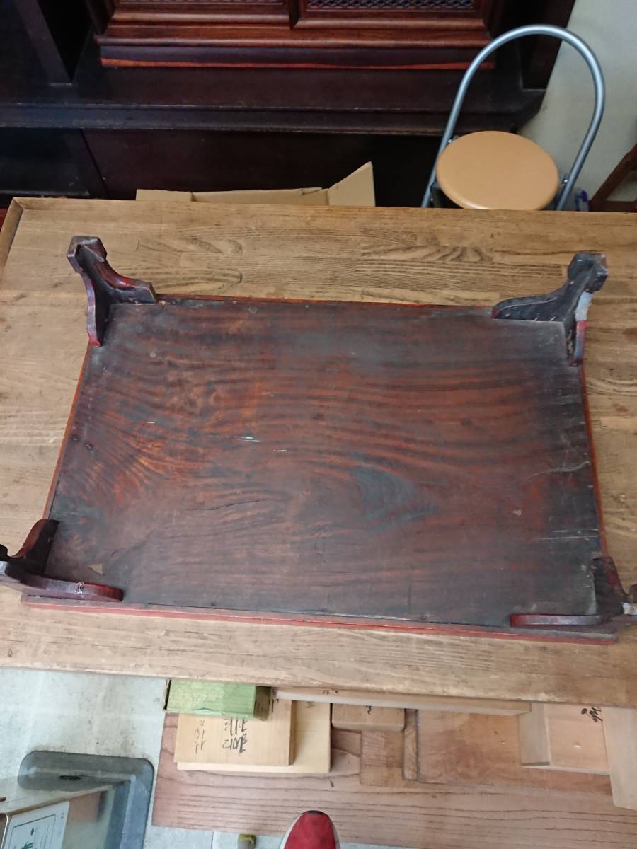 明治7年甲戌6月旧八十五区長高村老製の煎茶高足盆です。高さ16,5cm横70cm奥行き45,5cm古いものですので汚れ多少の痛み直しあります。送料全国3000円