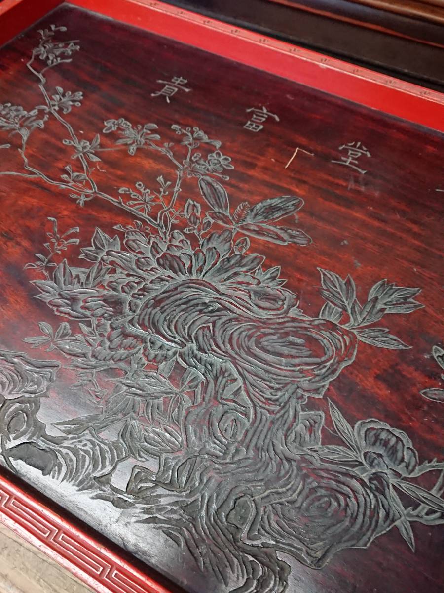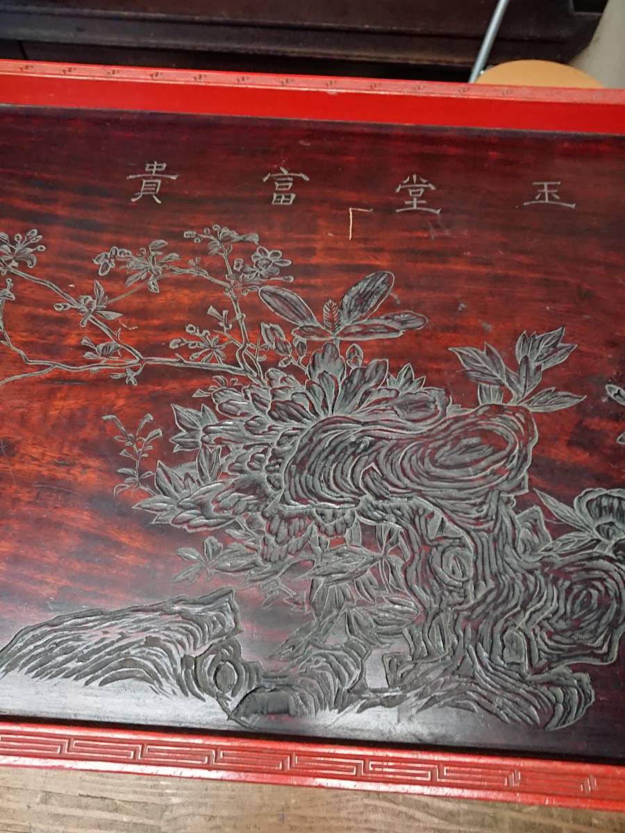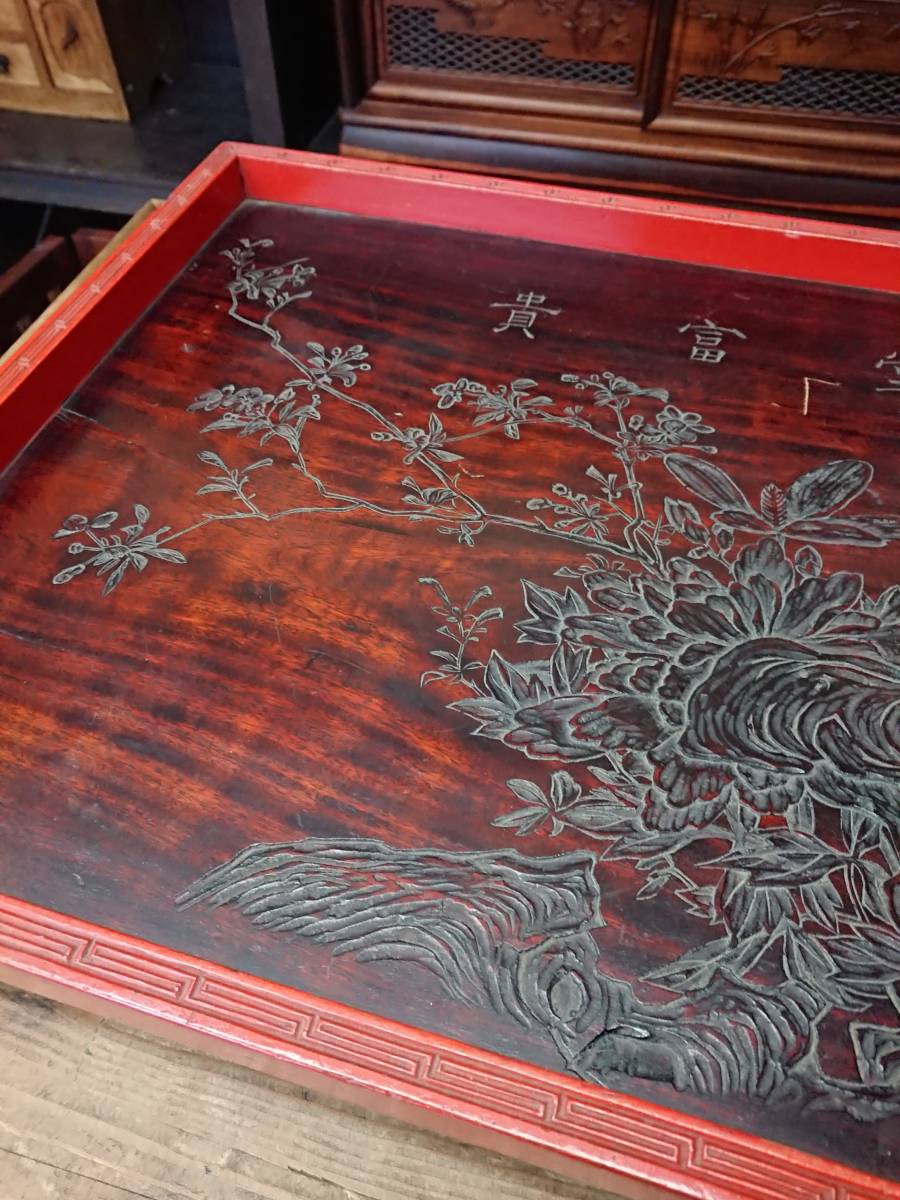 明治7年甲戌6月旧八十五区長高村老製の煎茶高足盆です。高さ16,5cm横70cm奥行き45,5cm古いものですので汚れ多少の痛み直しあります。送料全国3000円