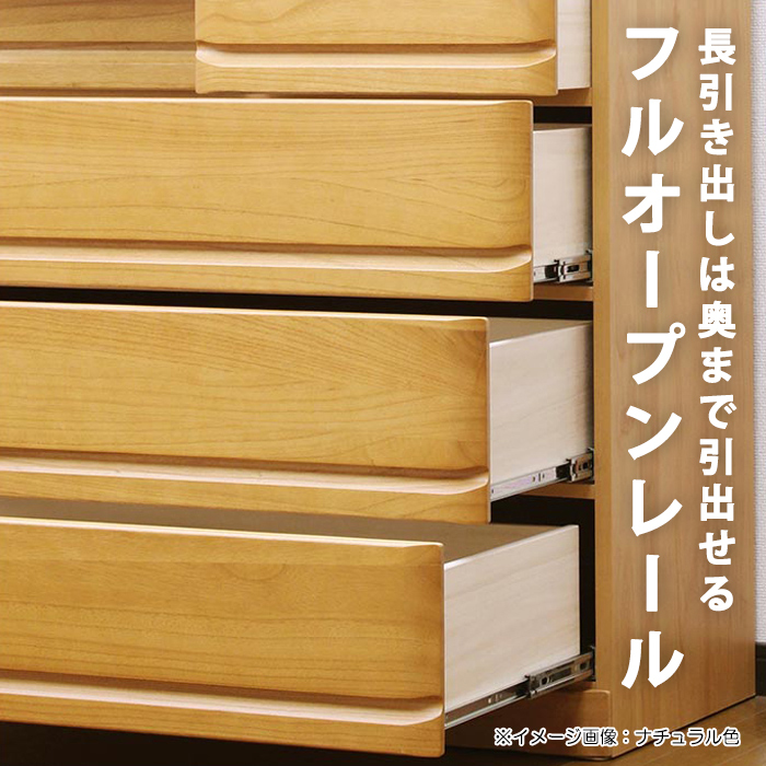 引き出しは強度のある箱組、長引き出しには奥のものまで出し入れしやすいフルオープンスライドレール付き。