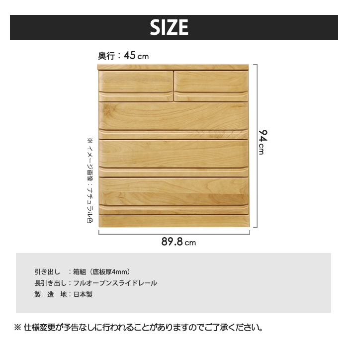 特  徴衣類収納に最適な桐無垢材を表面材に採用したシンプルチェスト。
