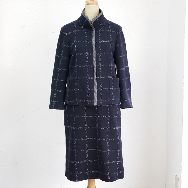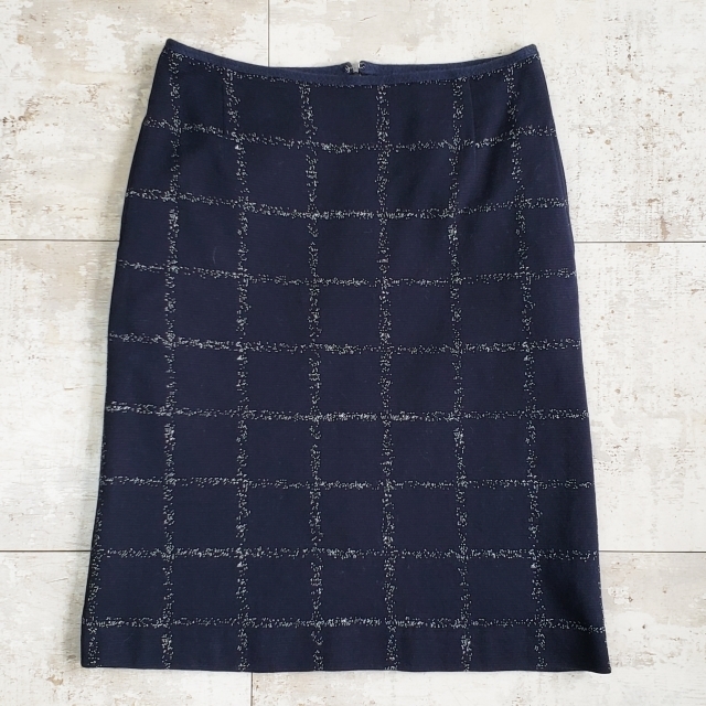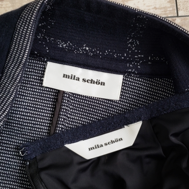 | ミラショーン チェック柄 セットアップ スカート 42 日本製 ネイビー コットン イタリア製生地 milaschon | |