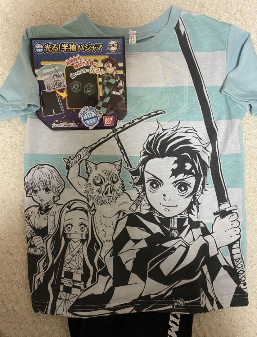 即決 3780円 新品 未使用 送料無料 鬼滅の刃 光る!半袖パジャマ 半袖半ズボン 120cm 炭治郎 新品