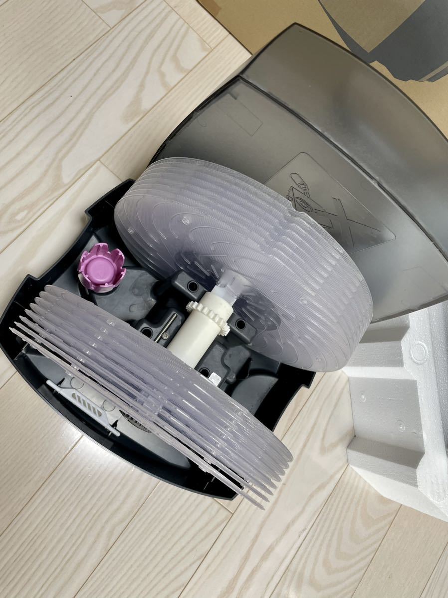 メーカーに商品送付して、電気部点検 クリーニング済み。新品パーツ交換 本体受け下部一式、水槽タンク、ディスク、シルバーステック等を新品交換済み。メンテナンス及びパーツ交換等の合計金額 約20000円かかりました。