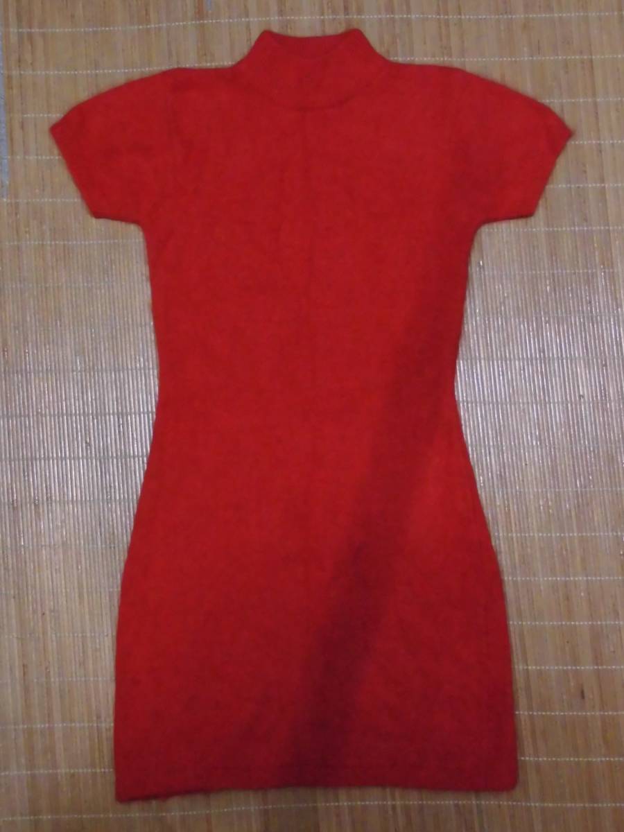 【未使用(保管品)】ボディコン/ミニ丈ワンピース [毛(アンゴラ)70%+ナイロン30%] (サイズ:Free・M程度/着丈:約80cm) 着心地が良い!