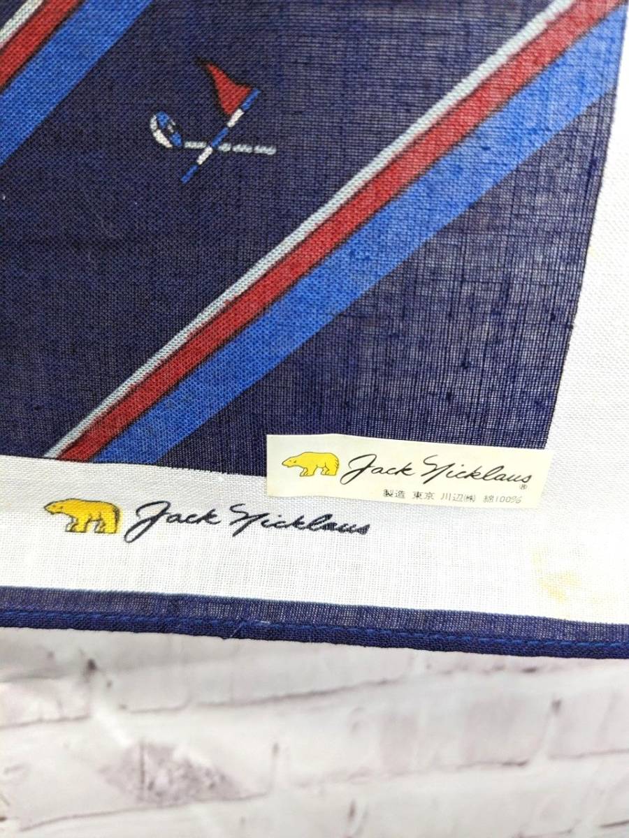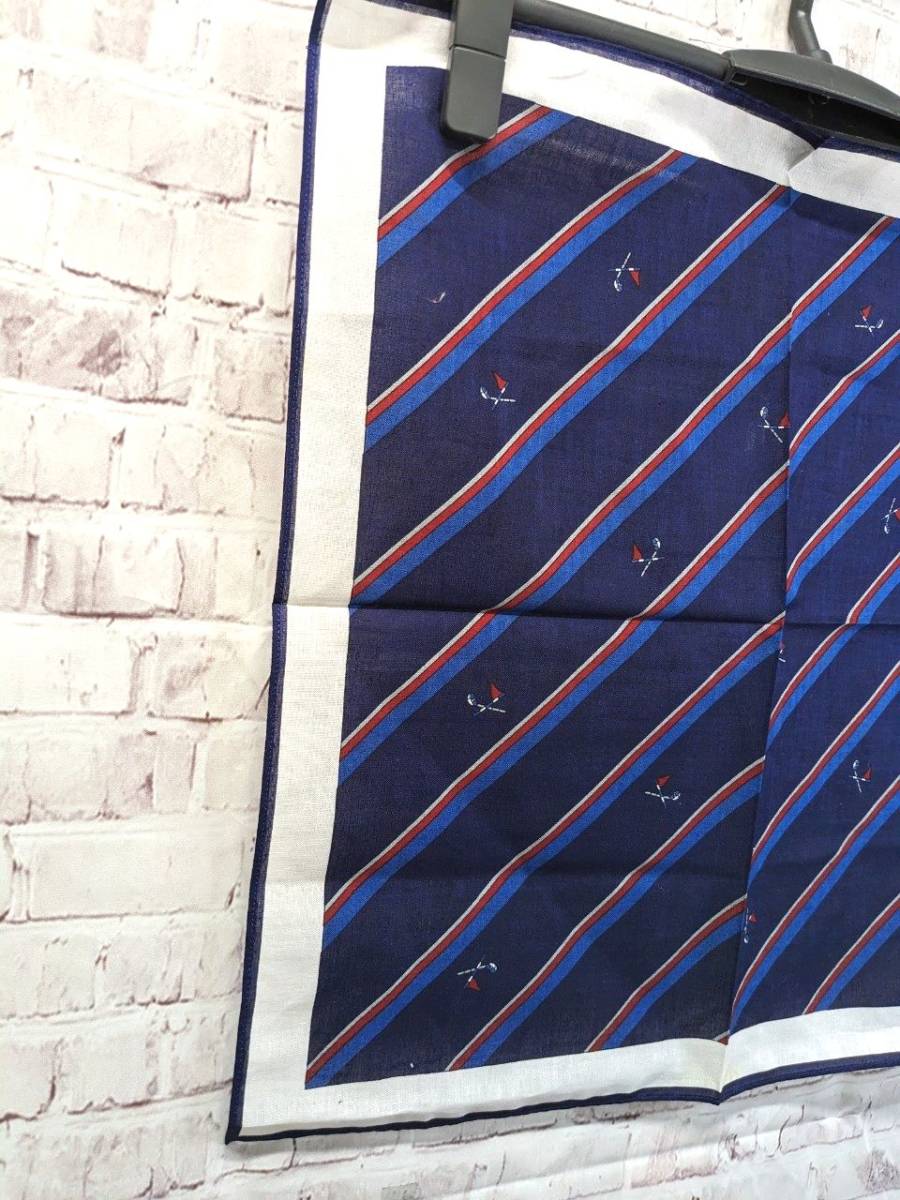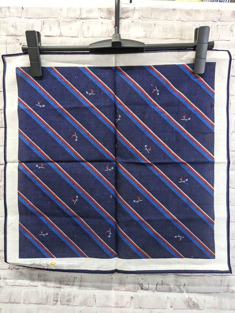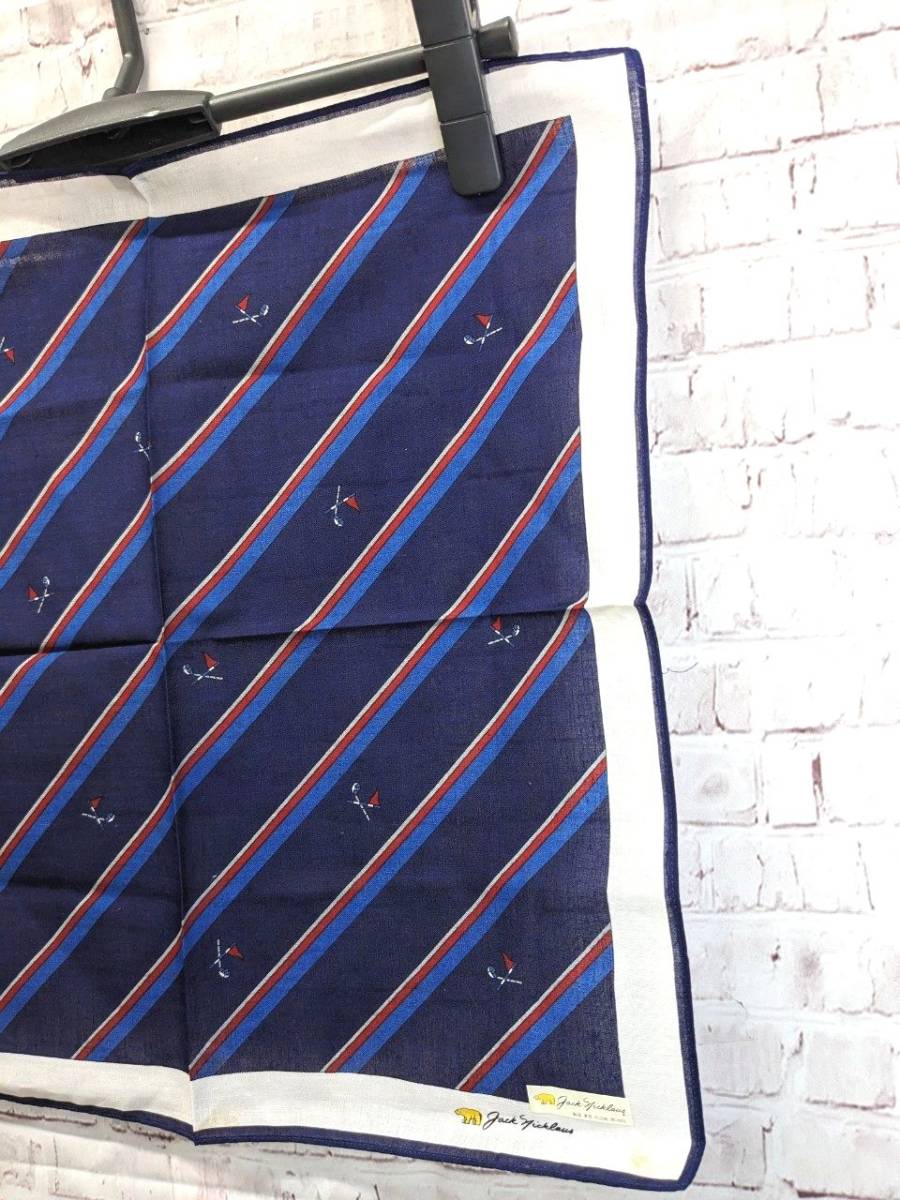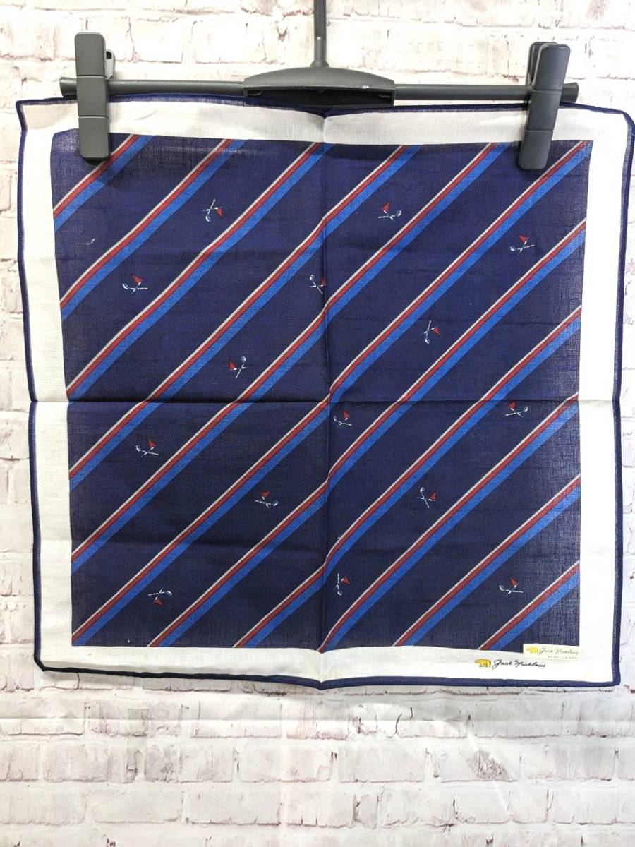 【シール付き未使用品】ゴールデンベア ジャックニクラウス ハンカチ ストライプ柄 ネイビー×レッド