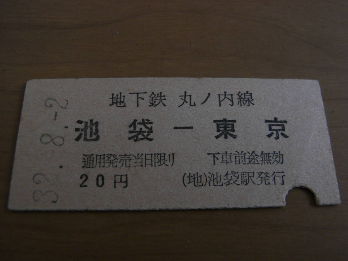 帝都高速度交通営団 地下鉄丸ノ内線 池袋-東京 20円 昭和32年8月2日 池袋駅発行