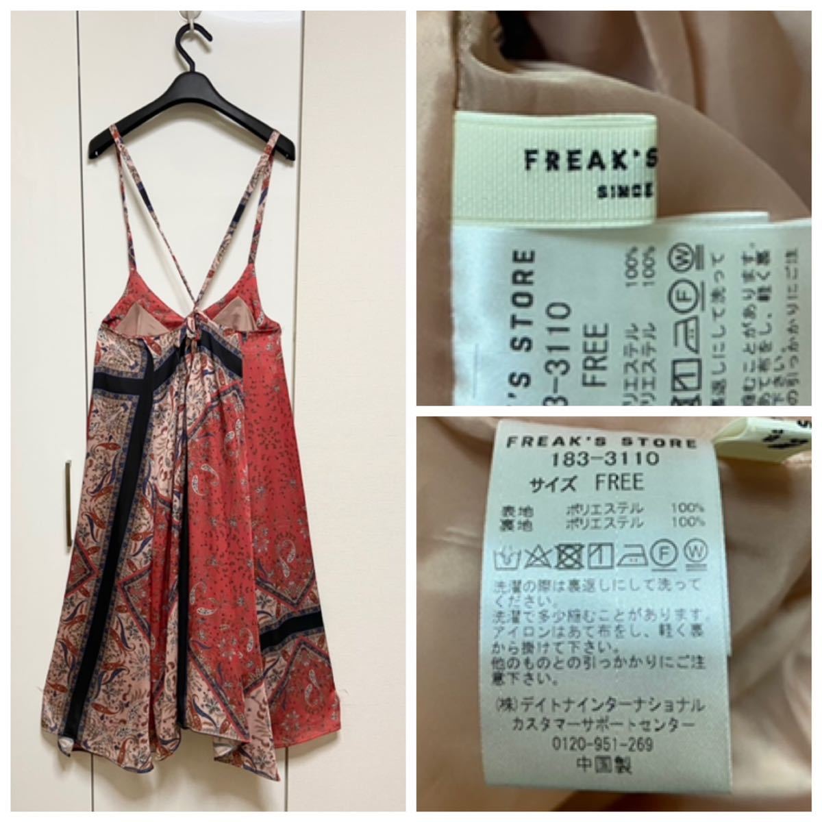 フリークスストアのDeveaux/デヴォー、スカーフ柄ワンピース、タグ付きの新品です。保管上の汚れやダメージはありませんが、クローゼット保管ですので神経質な方はご遠慮ください。