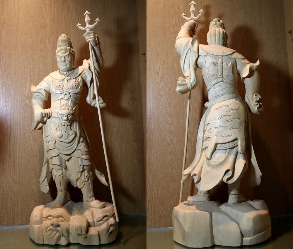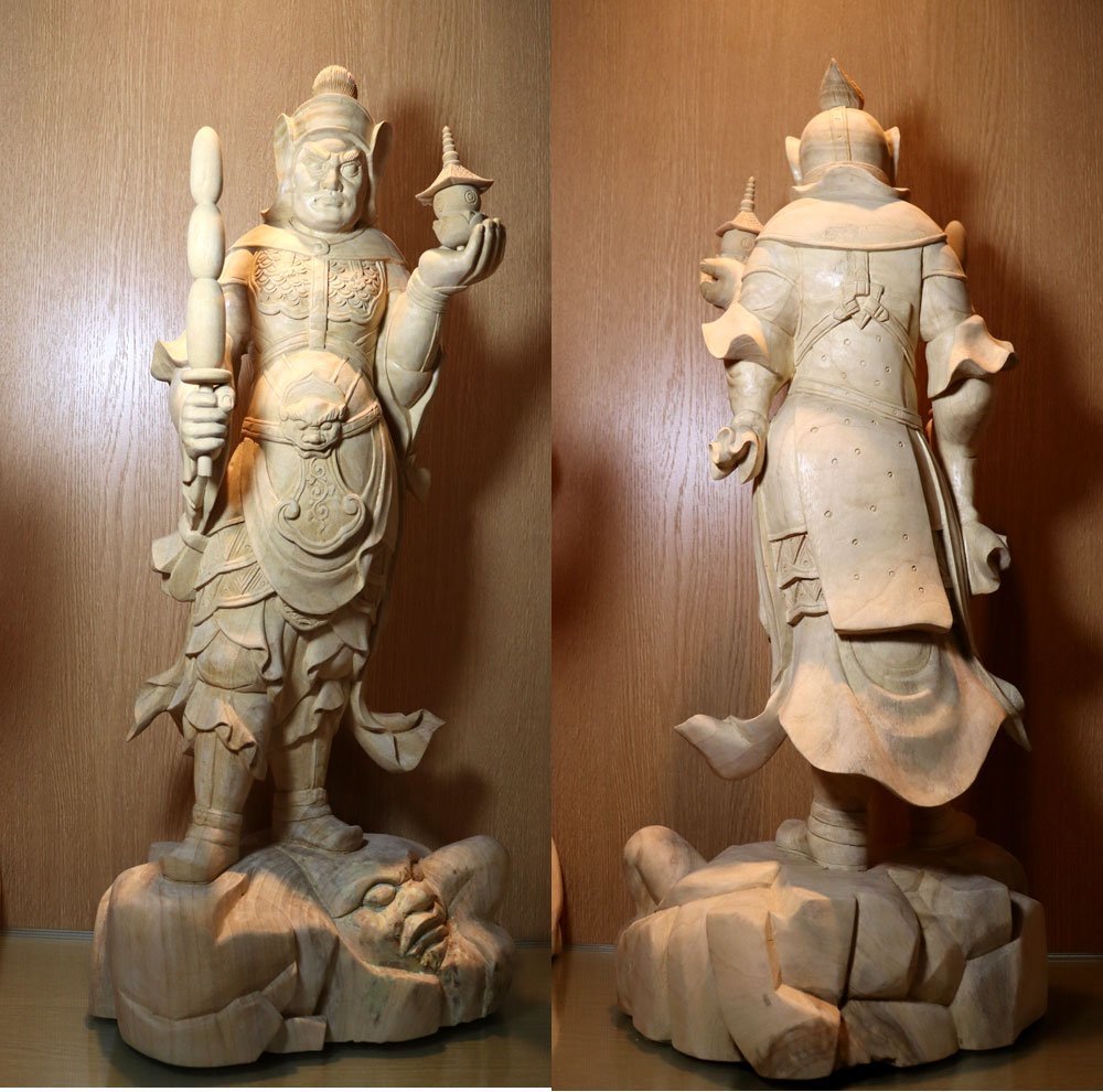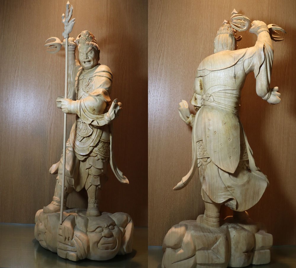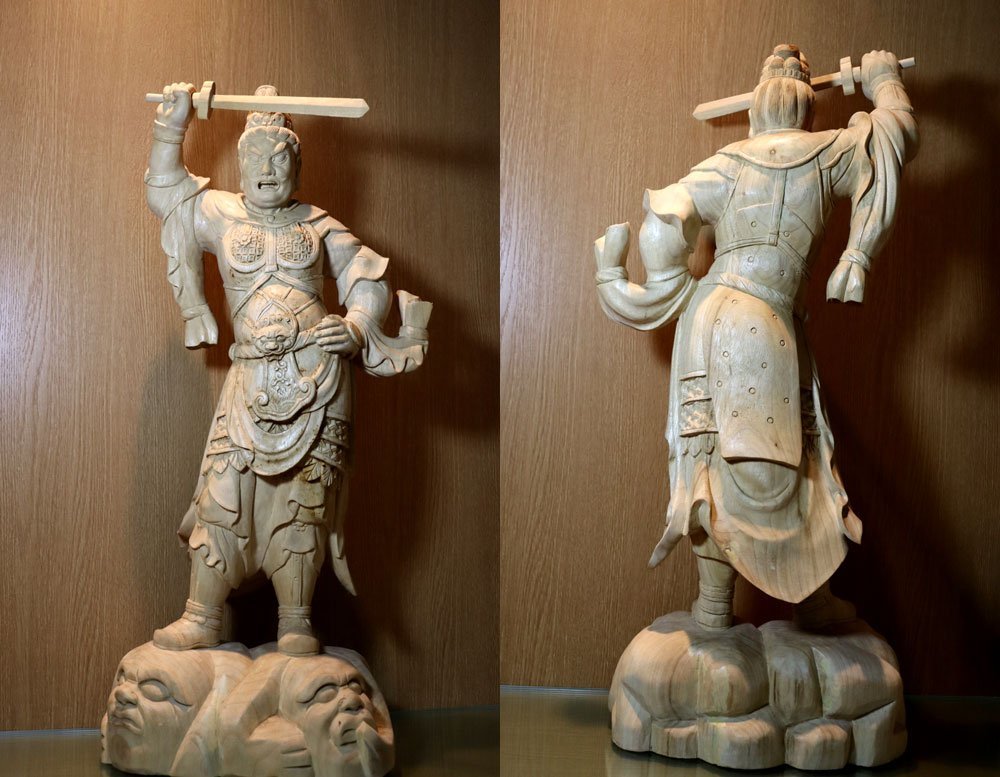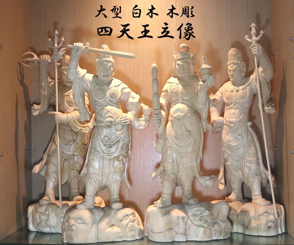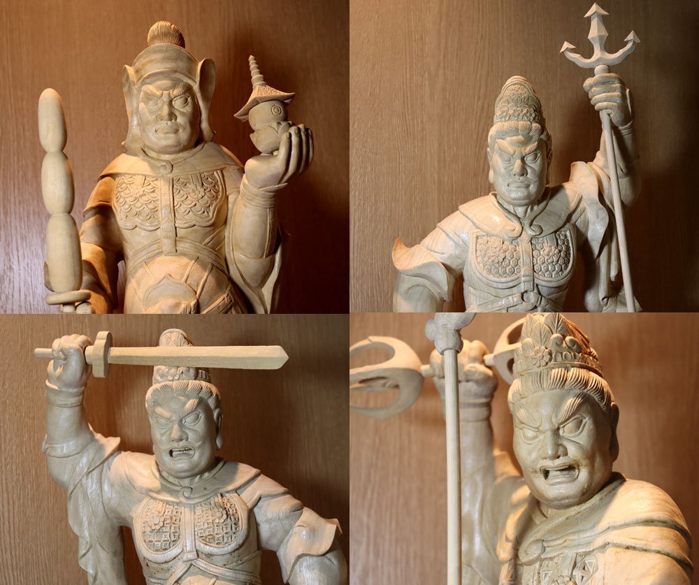・商品は 一般家庭で長年供養、合掌されていた白木彫刻仏像、特大の四天王立像4体です。