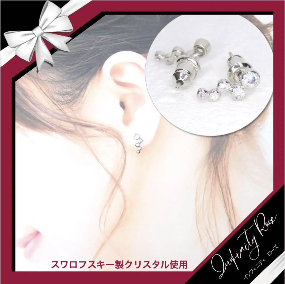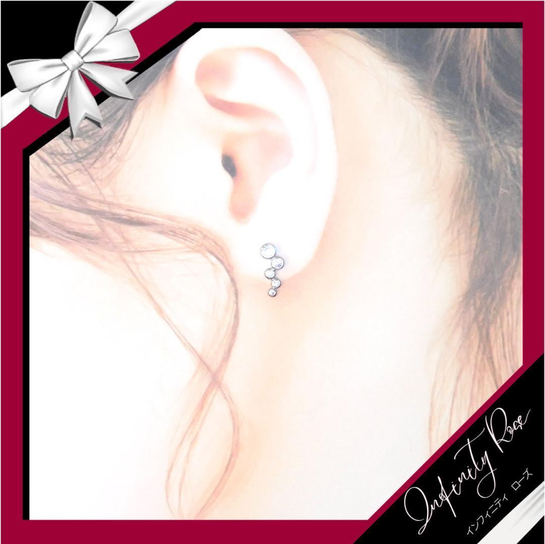 (5097)小さく素敵な5粒クリアクリスタルピアス プレゼント 高価爪留め仕様 スワロフスキー製クリスタル使用