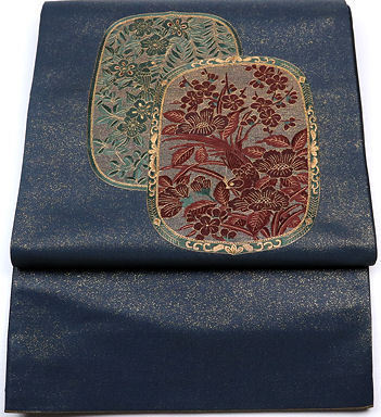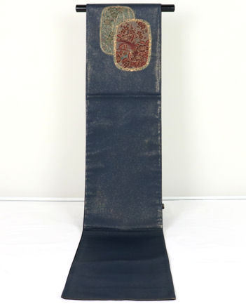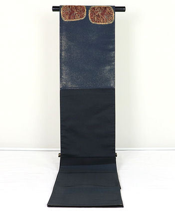 | 西陣織袋帯 濃紺・金箔地刺繍鳳凰唐花 新品 仕立て上がり | |