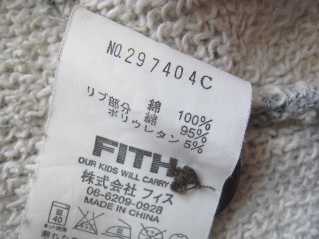 美品!!フィス FITH*春夏モデル ロゴタグ付き 立ち襟 霜降りスウェットジャケット 160 グレー