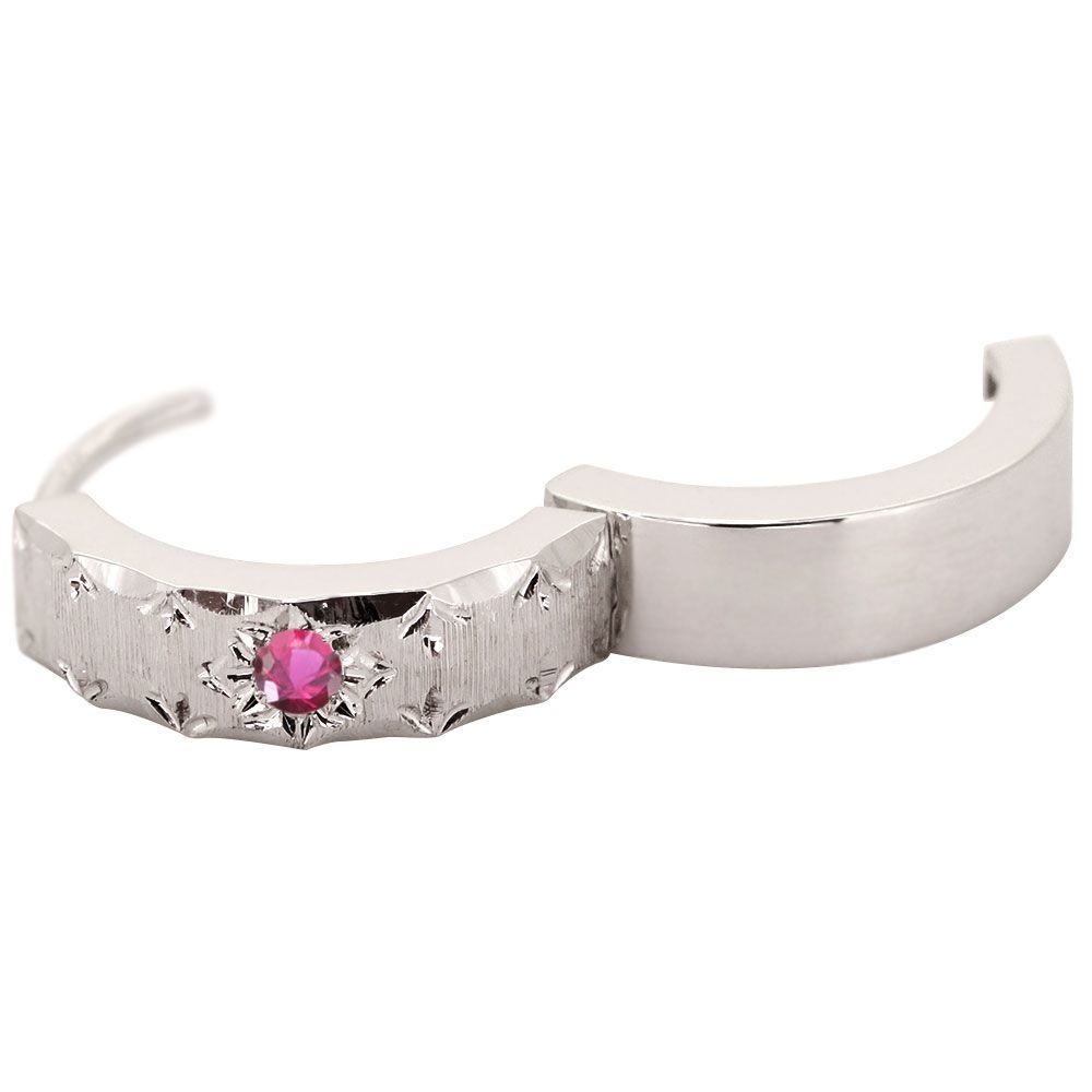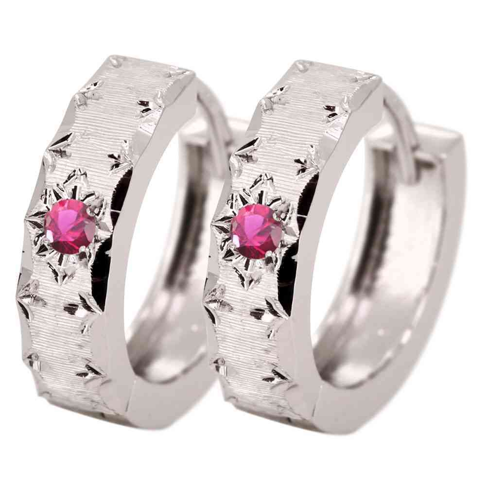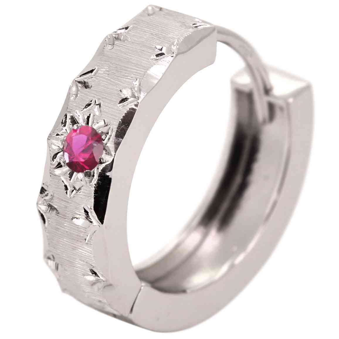 7月誕生石ルビーを使用したシルバー製の、レディースフープピアスです。