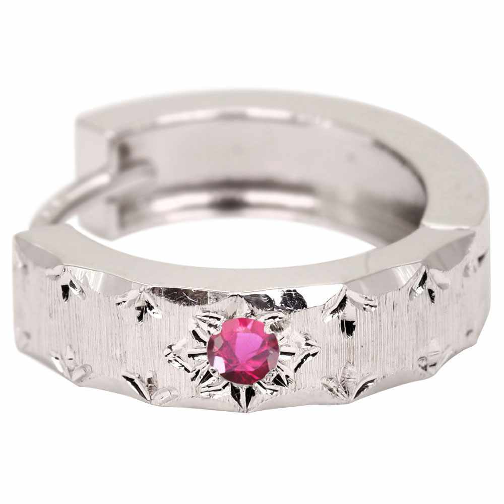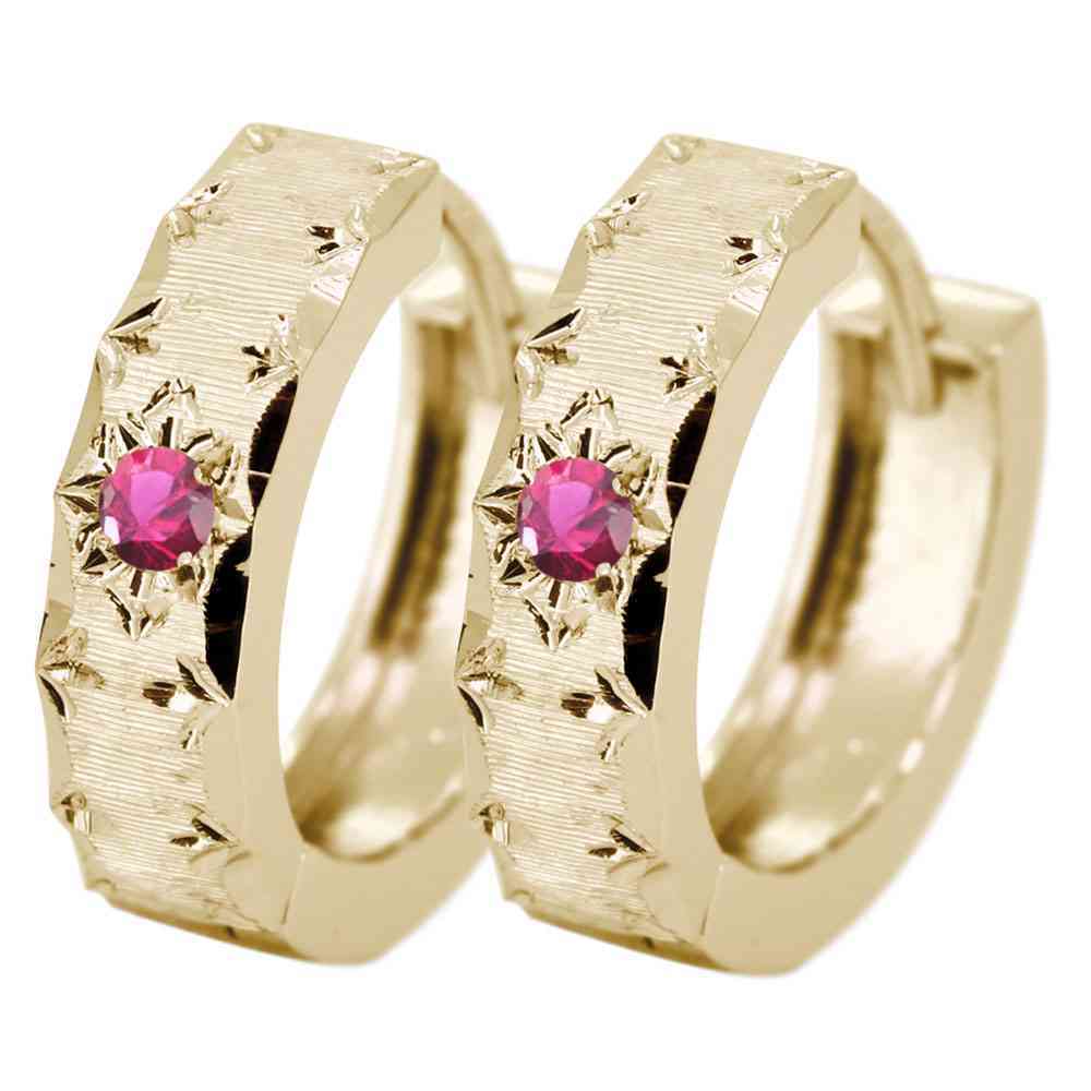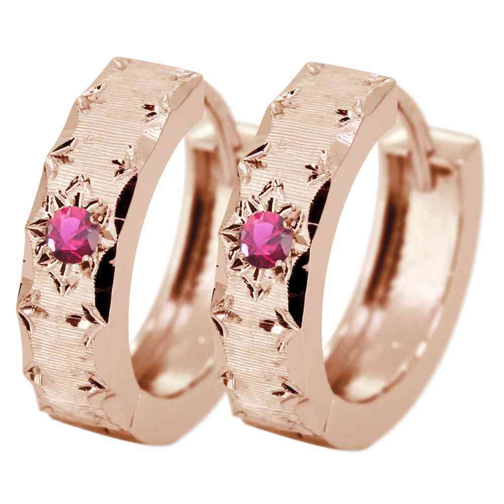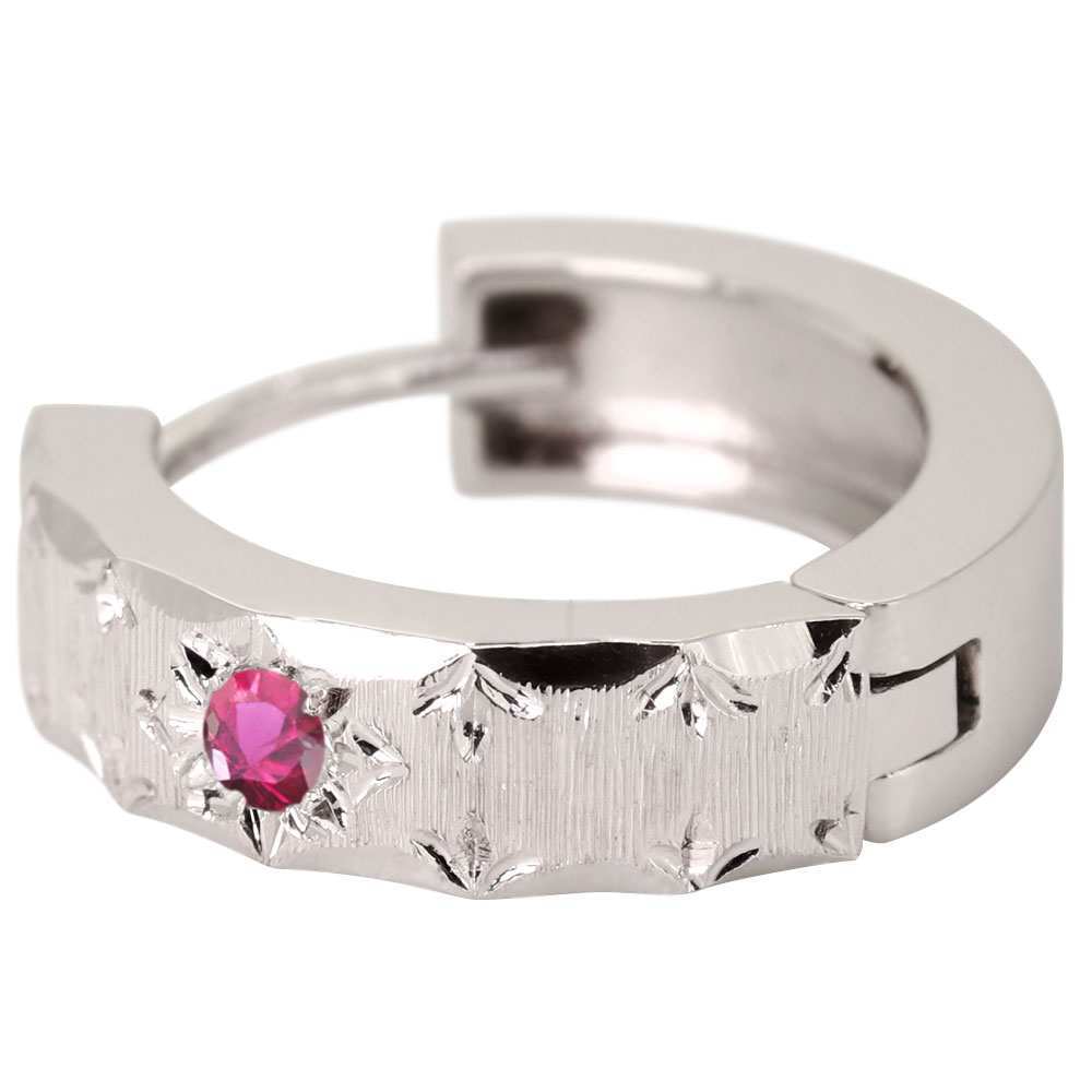 7月誕生石ルビーを使用したシルバー製の、レディースフープピアスです。
