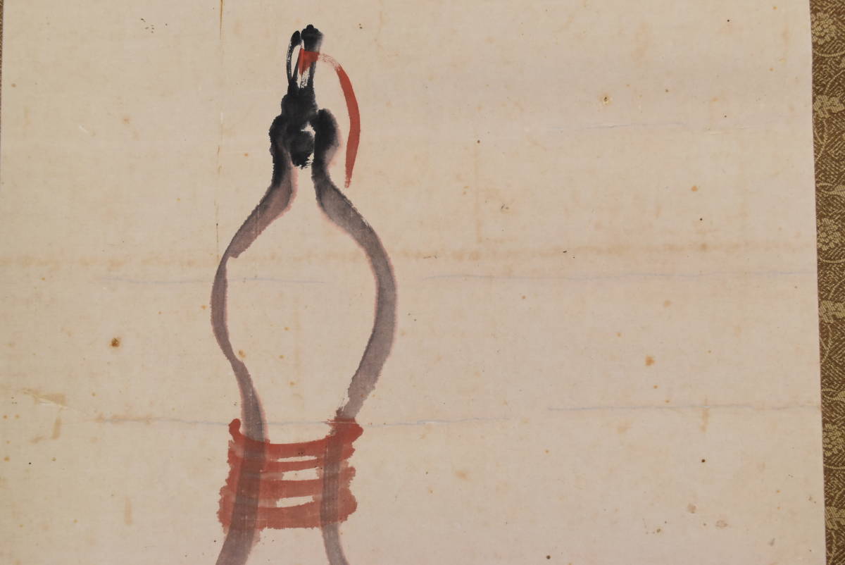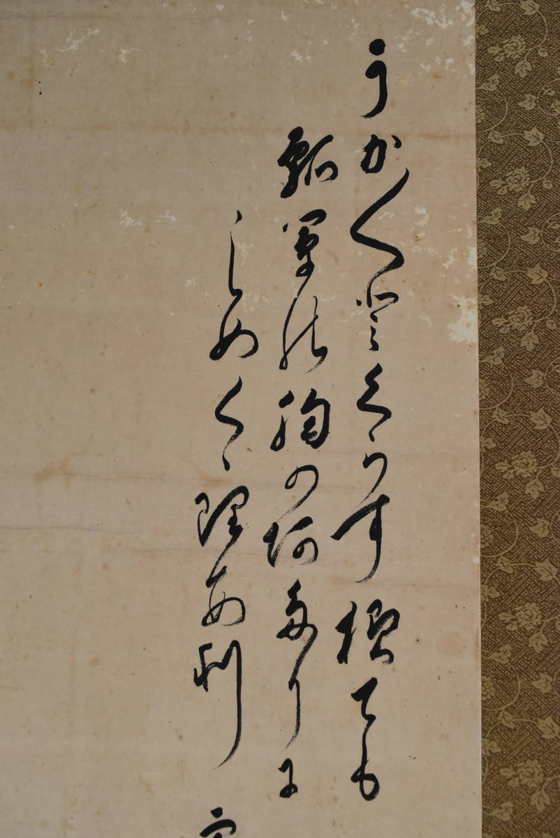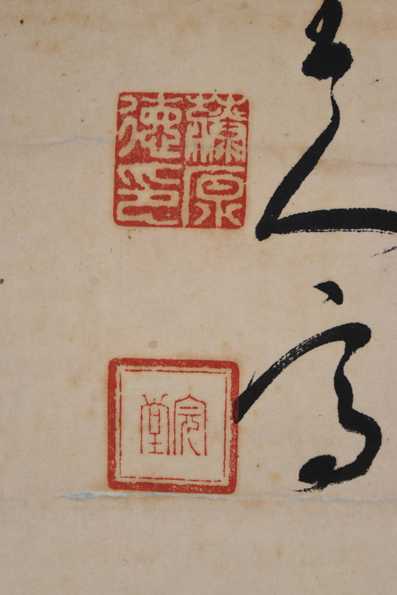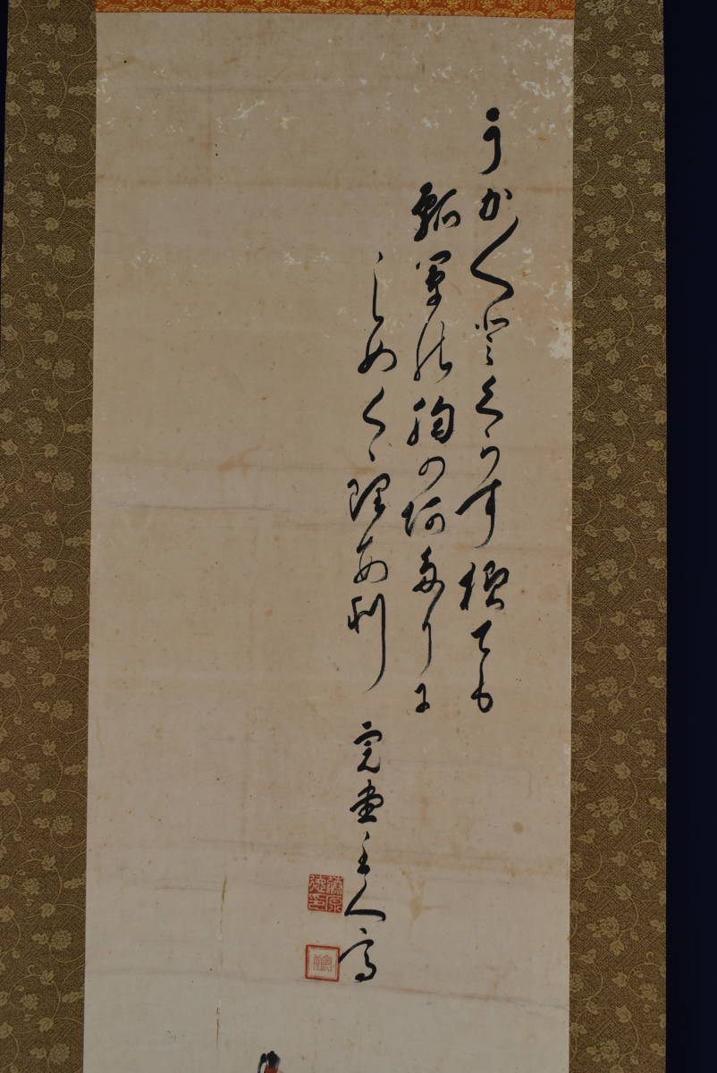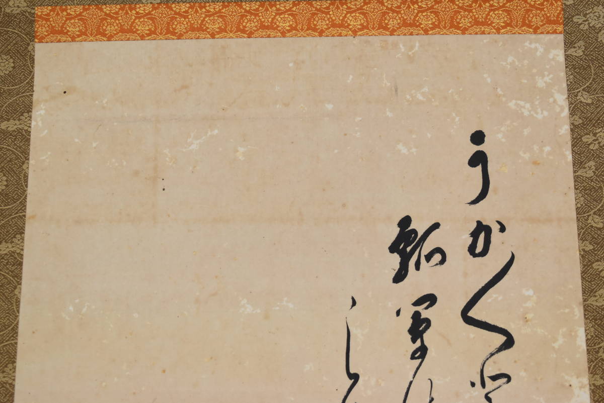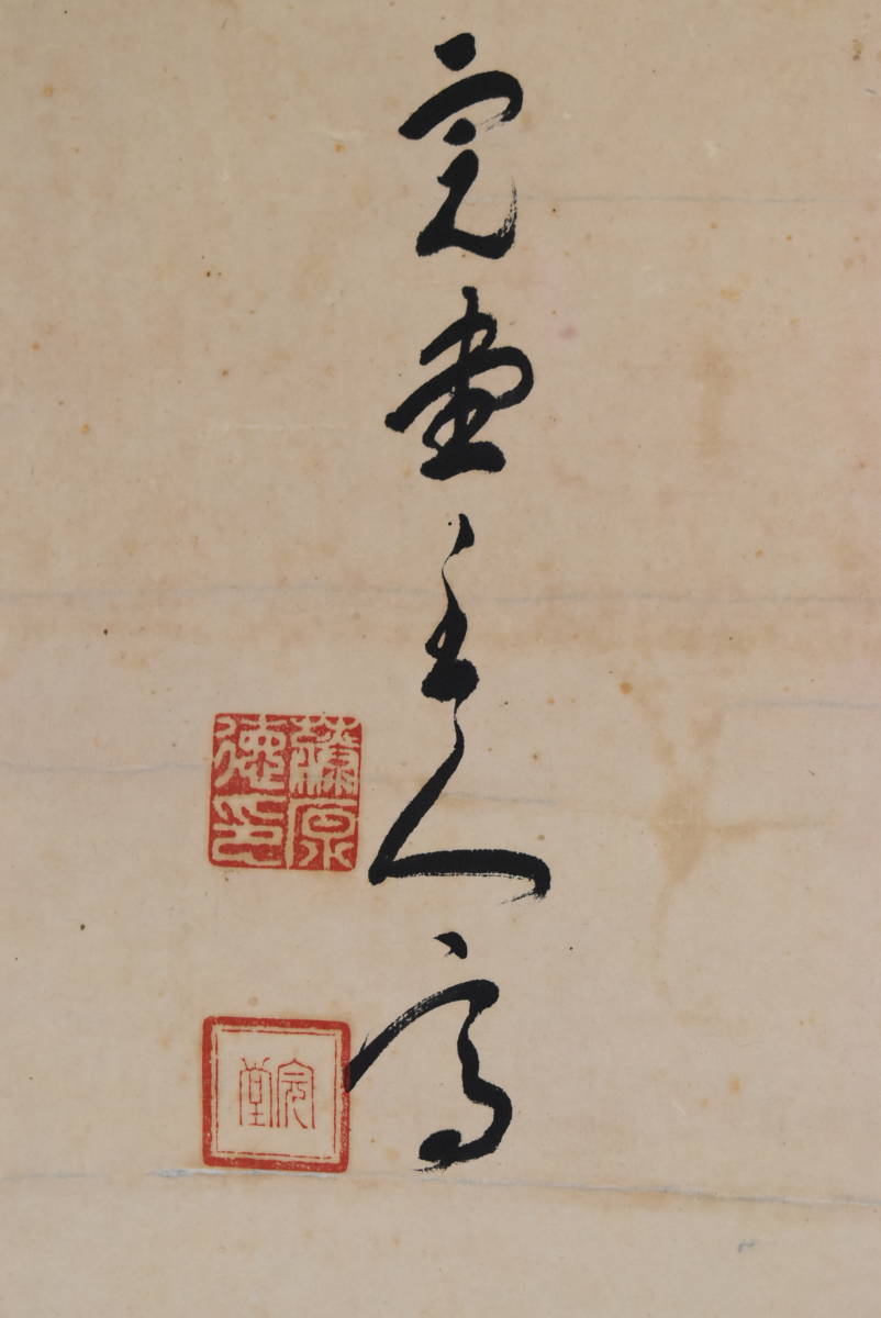 【作品状態】 本紙は紙本肉筆です。本紙は時代感あり、薄汚れ、全体に汚れシミ、多数の糊シミ、多数の虫ナメあります。表装は概ね良好です。