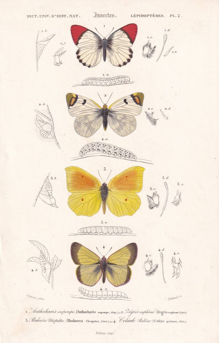 フランスアンティーク 博物画『蝶類4』 多色刷り石版画