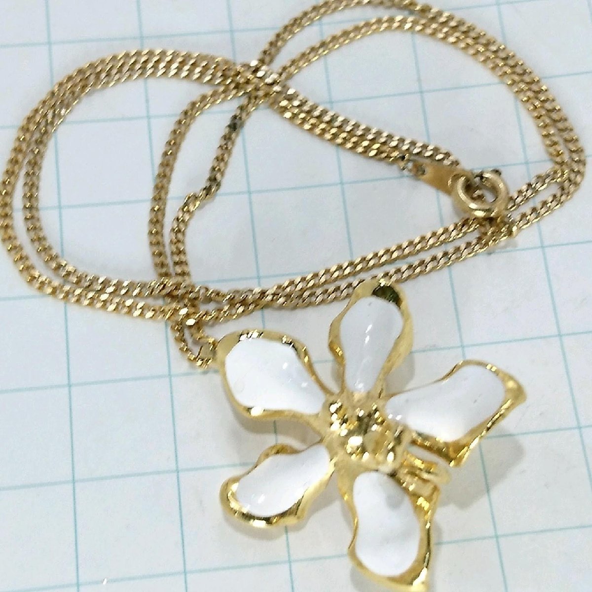 送料無料)ビンテージ☆白花 チェーンペンダント☆アンティークブローチ A15914