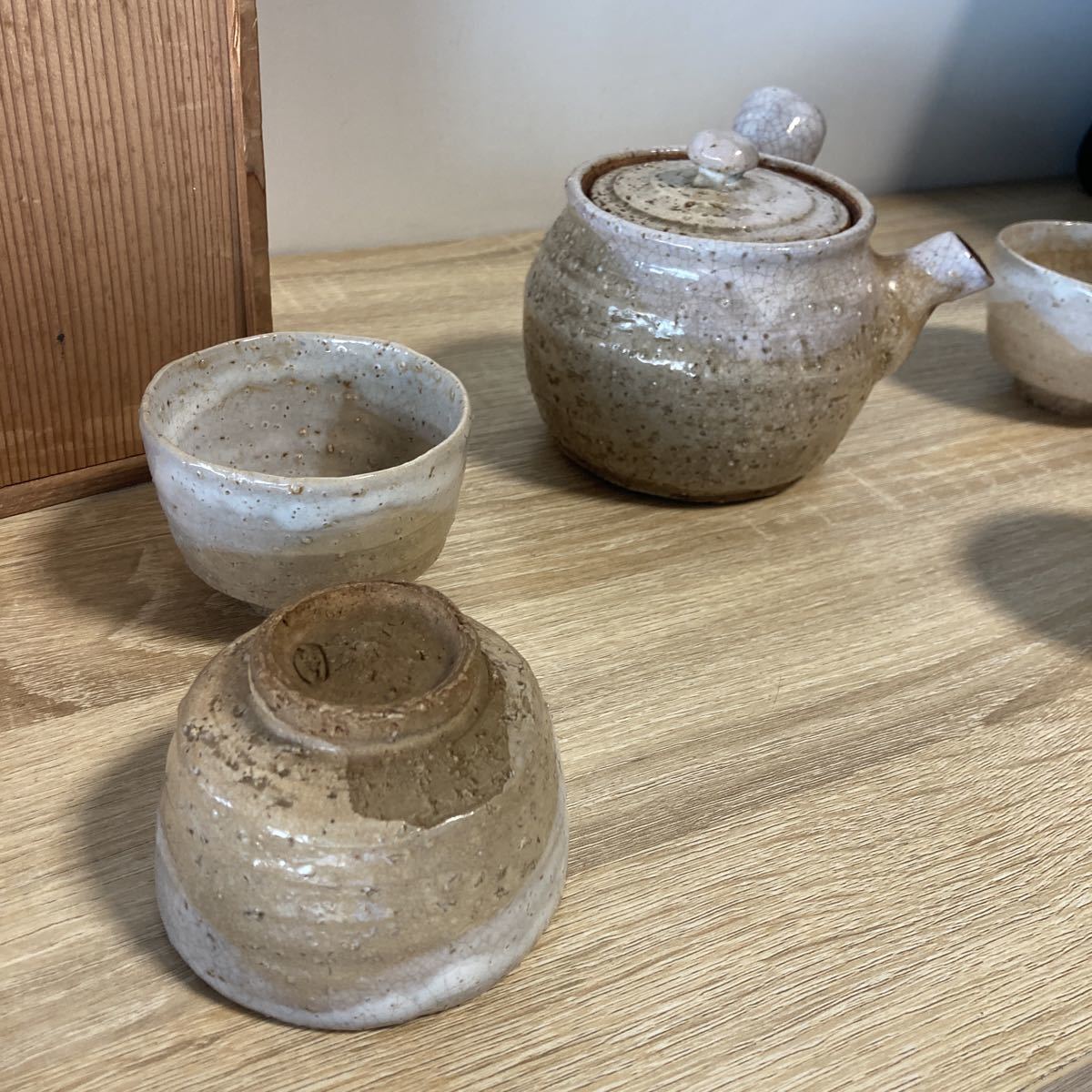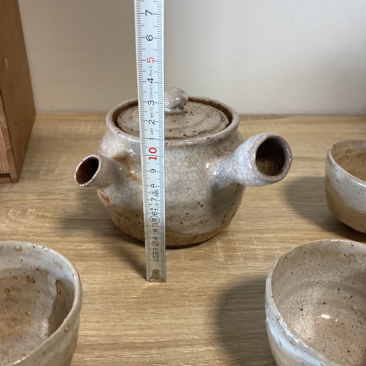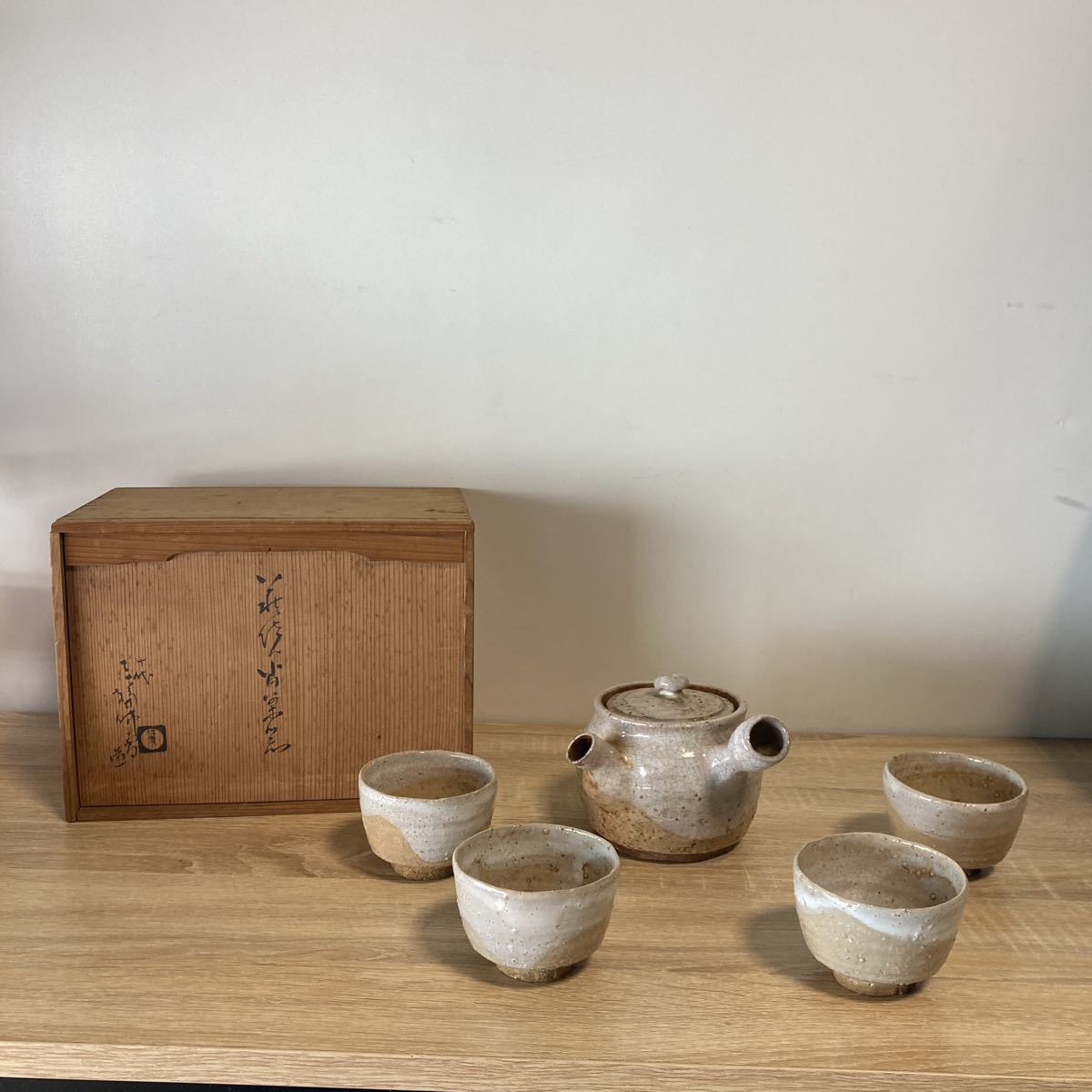【治】十代『三輪休雪』作 萩焼茶器揃☆共箱 煎茶碗 宝瓶 湯冷 人間国宝 白萩 煎茶道具