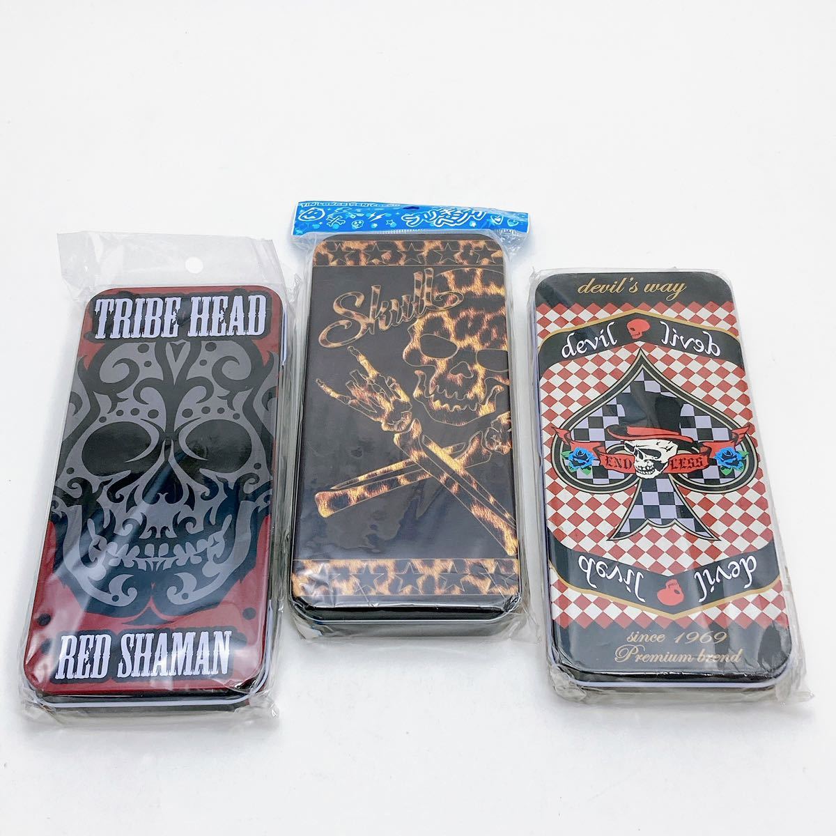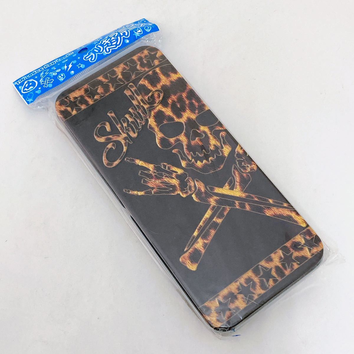 缶ペンケース ドクロ柄 缶ペン カンペンケース ブリキ缶 懐かしい スカル柄 縁起