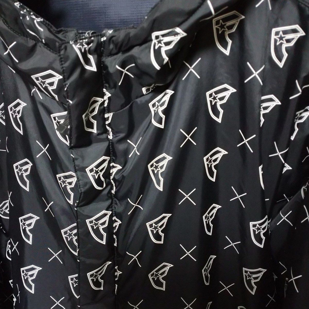FAMOUS STARS AND STRAPS リバーシブルダウンジャケット フェイマススターズ&ストラップス 総柄 ネイビー blink182 ブリンク182