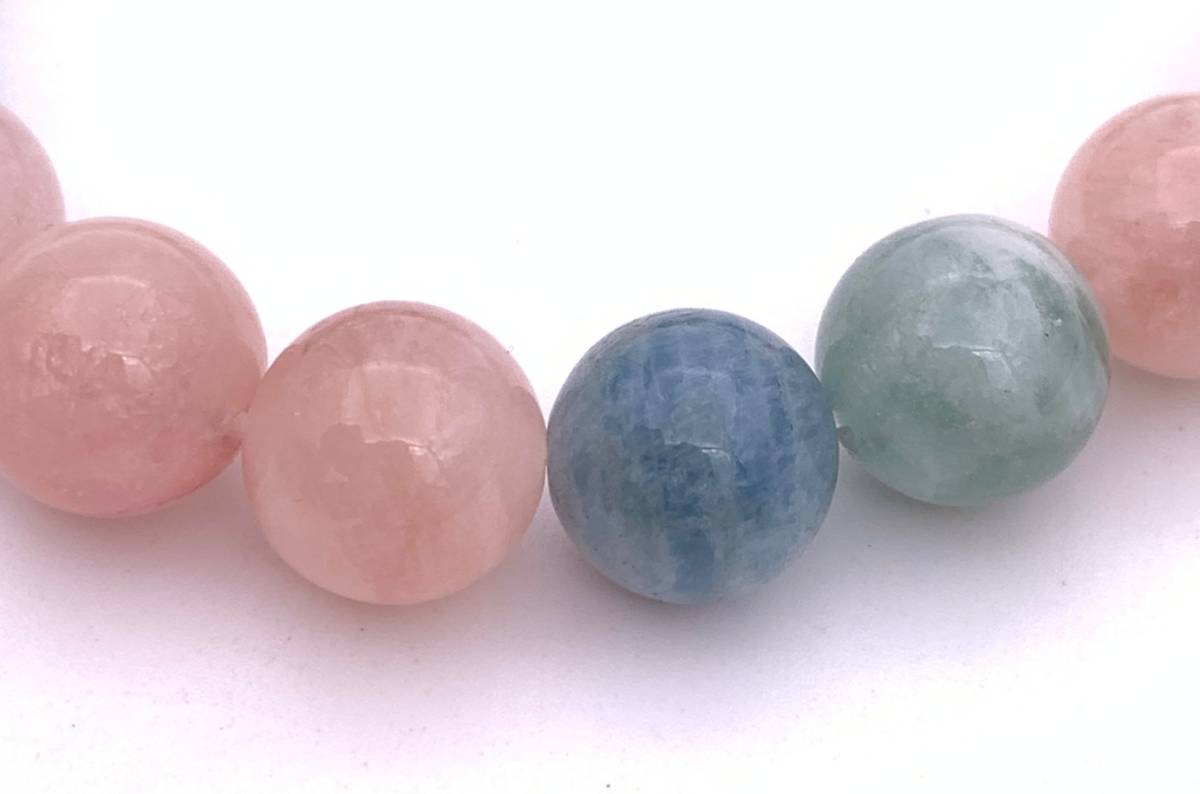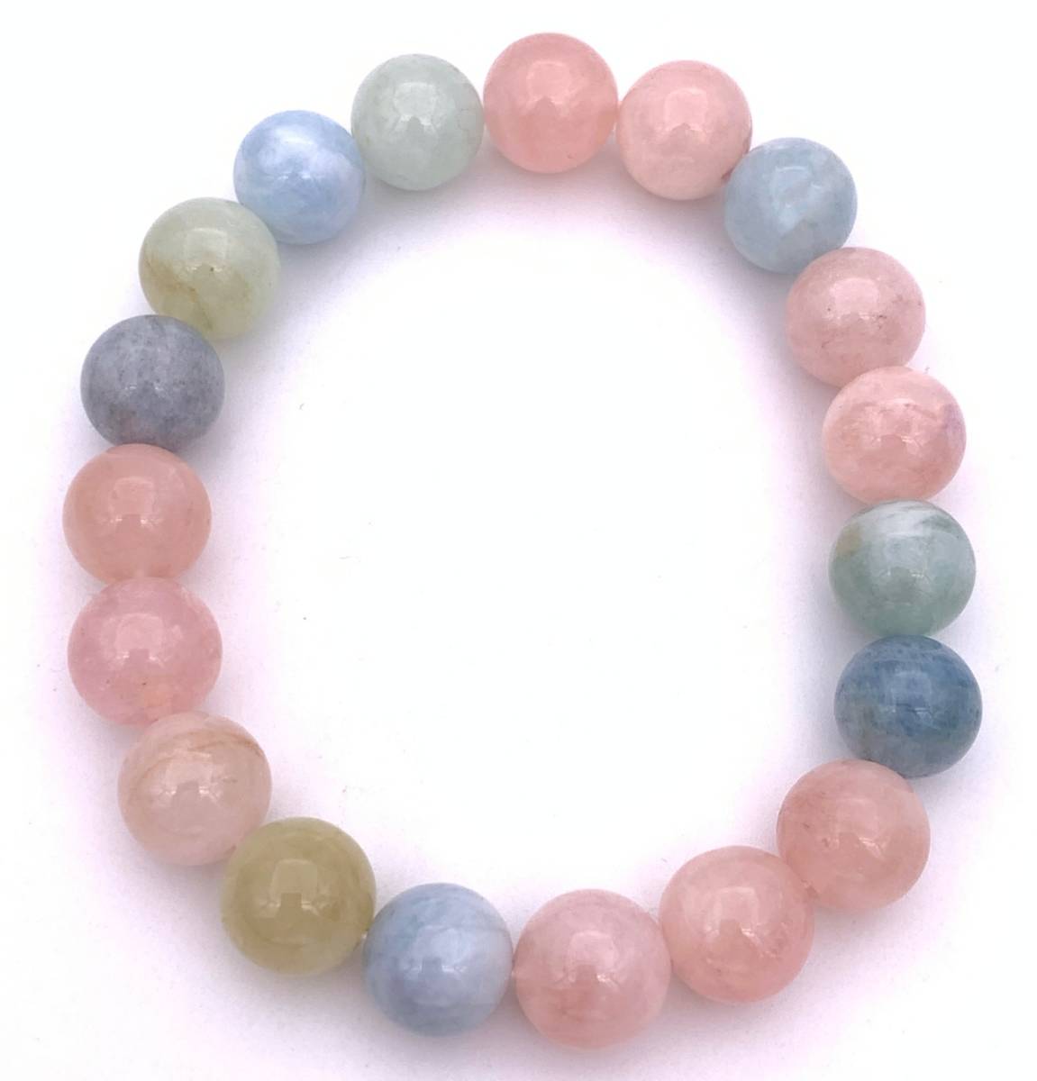 天然石ベリル AAA10mm玉のブレスレット 【ベリル】 アクアマリン(水色)・エメラルド(緑色)・モルガナイト(ピンク色)・ヘリオドール(黄色)などの総称です。 持つ人に、名誉と富を与え、とても良質なヒーリング効果を持つ。 心身ともに癒し、着けていると、とても穏やかで安心した気持ちになるとても慈悲深く優しい石です。 商品説明 ★サイズ:内径16cm, 重さ約28g (サイズ調整ご希望の方は致します! ★ベリル 10mm玉 (産地:マダガスカル)