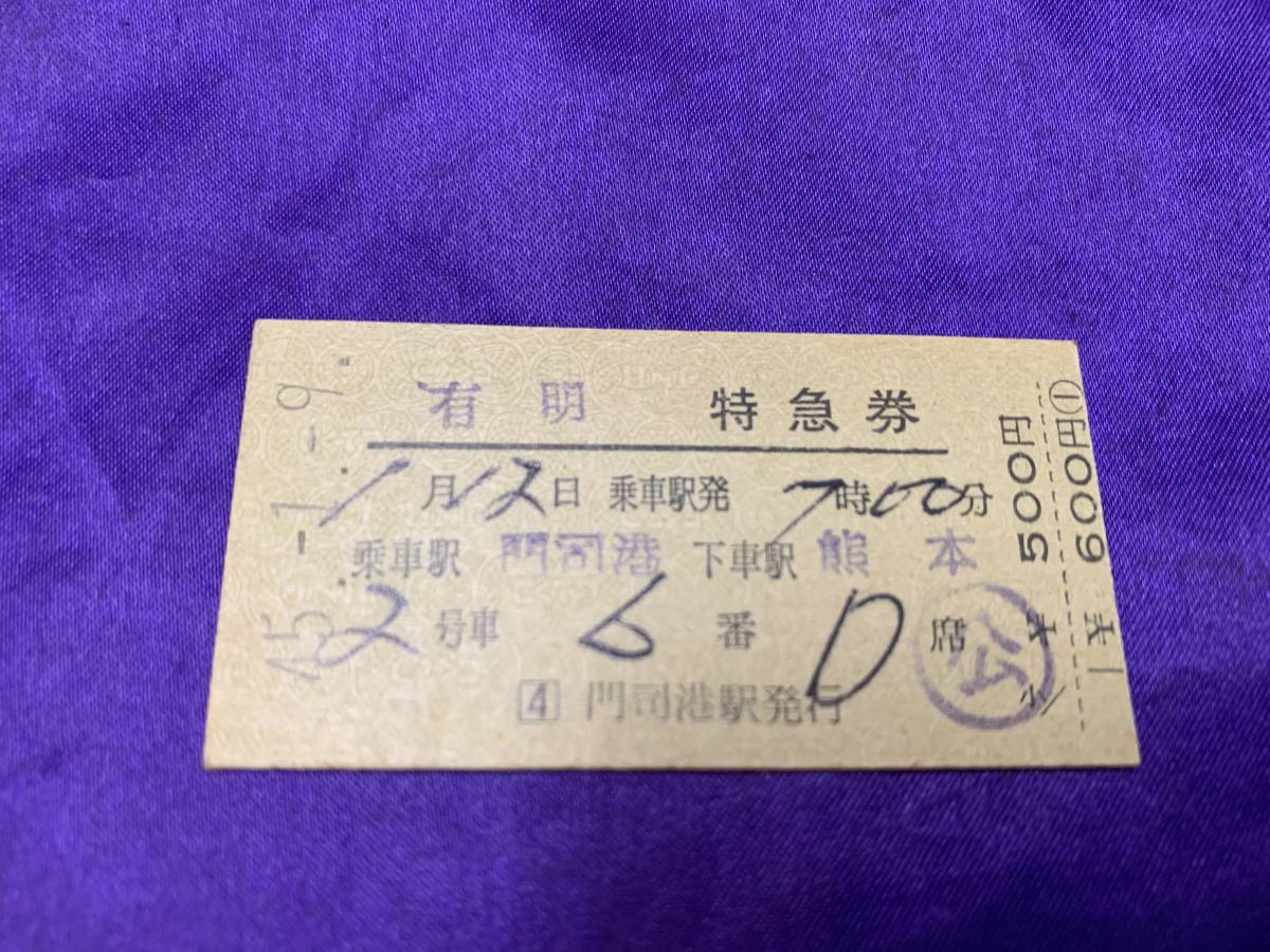 昭和45年 特急有明 特急券 45.1.9 門司港-熊本 -1051-