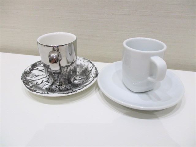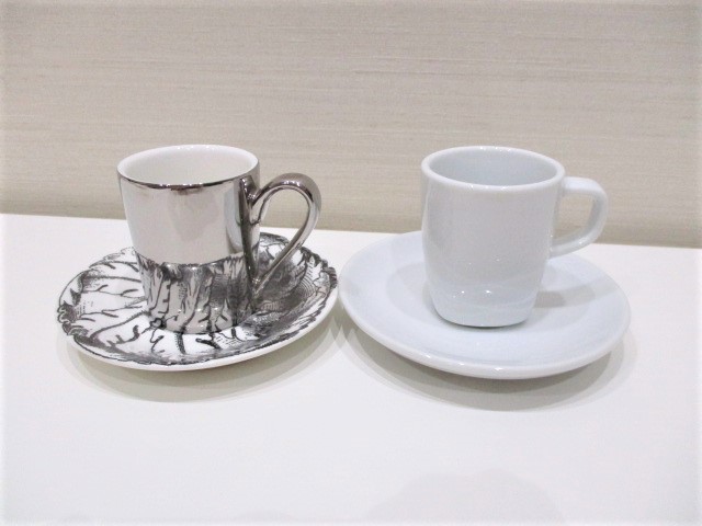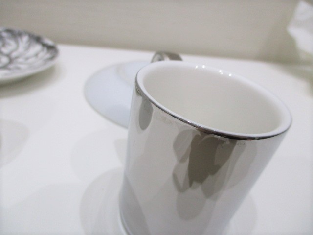 ザラはシルバーのカップに。ソーサーは黒の絵柄です。