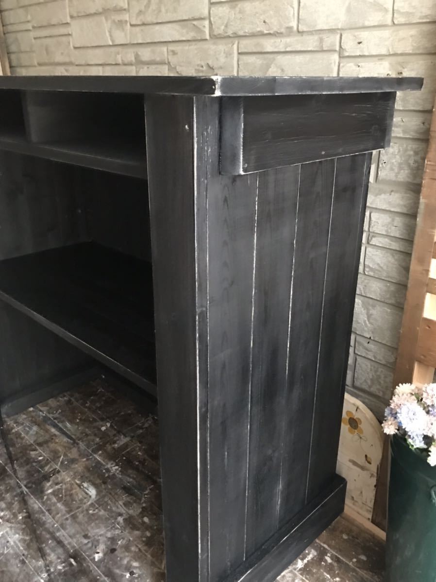![]() 商品説明落札後の制作になります。通常で7日間程度の製作期間を頂戴しますが 状況により異なりますので納期のご希望(3週間以上先のご希望の場合も)は必ず落札前にご確認お願いします こちらは高さ89㎝・幅100㎝・奥行45㎝のカウンターです 各部のサイズは画像にてご確認下さい (記載サイズには多少の誤差がでます) ご使用に応じてオーダー可能ですので価格等お問い合わせ下さい 材質・カラー(本体)アクリル塗料・ブラック(エイジング塗装)/ワトコオイル仕上げ (天板・棚板のみウレタンニス仕上げ) 厚み2cm・幅9cmのパイン材使用 発送方法/料金アートセッティングデリバリー/梱包を解いてご指定場所に設置(搬入経路のご確認をお願いします) お届け不可地域がございますのでご入札前にご確認お願い致します https://www.rakuten.ne.jp/gold/kaguichi-osaka/yamato_area.html 【Cランク・三片合計250㎝以内】 北海道(函館エリア)14300円 北海道(札幌・千歳エリア)16600円 北海道(道北・道東エリア)17400円 青森/13700 円 岩手・秋田/12200円 宮城・山形/10750円 福島/10300円 茨城・栃木・新潟/9800円 東京・神奈川・埼玉・千葉・群馬/9400円 長野/8900円 富山・石川・福井・山梨・静岡・広島・愛媛・高知/8400円 愛知・徳島・香川・島根/7900円 滋賀・京都・大阪・兵庫・奈良・和歌山・鳥取・岡山・岐阜・三重/7700円 山口/8900円 福岡・佐賀・大分/9800円 長崎・熊本/10200円 宮崎・鹿児島/10700円 【納期に関して】 出来得る限りご希望に添えるよう努めさせて頂き 現在まで一度も期日に遅れた事はありませんが 万一、天災・事故等による運送会社の遅延 当方の作業上の事情による遅延により起きた損害に対して 補償は出来ません また万一配送中に破損が生じた場合は運送会社指定業者による修理対応となります事をご了承お願い致します コメントヒビや節抜けの無い木目のきれいな材料を選び天然木の特徴である伸び縮みも最大限抑える構造でしっかり丁寧に製作しておりますがご使用の過程で稀にヒビや歪みが生じるもございますのでご了承お願い致します(冷暖房の風や日光が直接当たる場所の設置はお避け下さい) 塗料は全て品質の高い物を使用しております。 天板等はニス保護剤塗装・その他は撥水性の高いオイルで仕上げておりますのでシミ汚れが防止できます どちらの品物も化粧板家具とは違い大変しっかりしていますのでメンテナンス次第で末永くご使用いただけます。補修・塗り替えが簡単な様に仕上げておりますので必要となった時は塗料や用具・作業方法についてなどお問い合わせくださいませ ![]() |