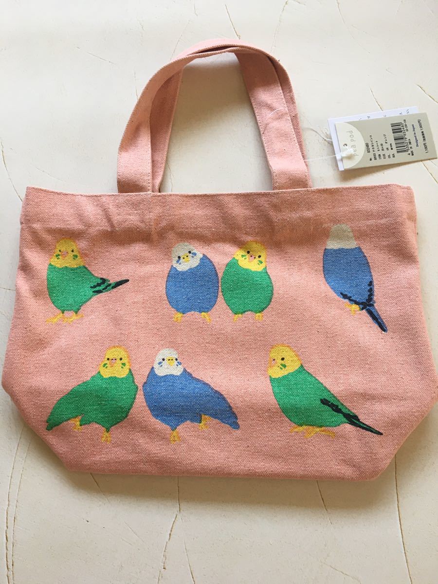 ミニトートバッグ インコ♪ ナカヨシインコ セキセイインコ お散歩・ランチバッグ 内ポケット付き