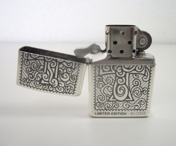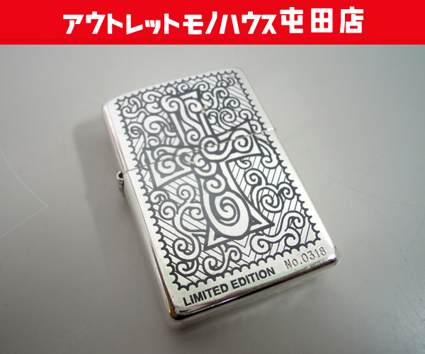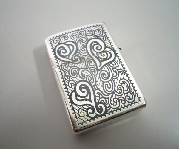 ◇ZIPPO クロス&ハート モチーフ 二面加工 シリアル入り No.0318