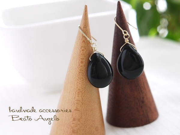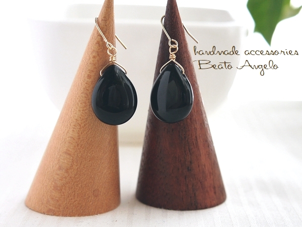 ◆+angelo+K14GF チェコ 洋梨ドロップの一粒ピアス(p-009)ジェット ブラック シンプル 大人 チタン 樹脂 イヤリング