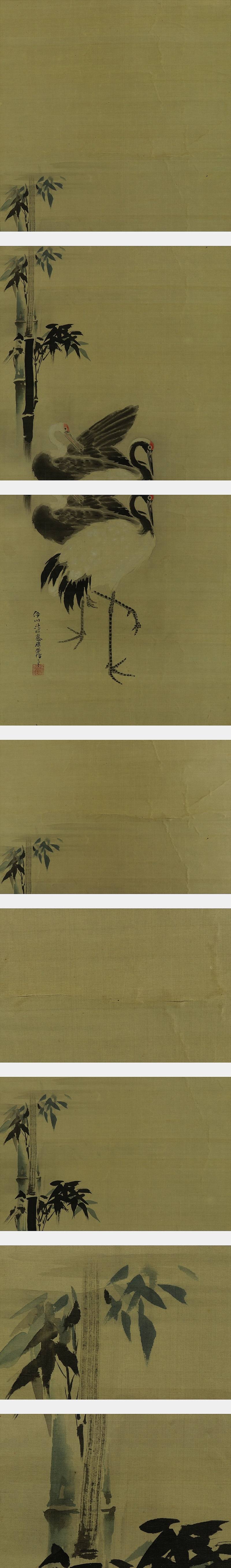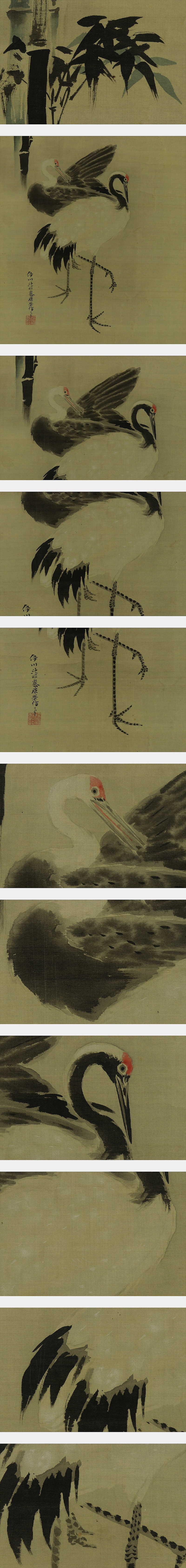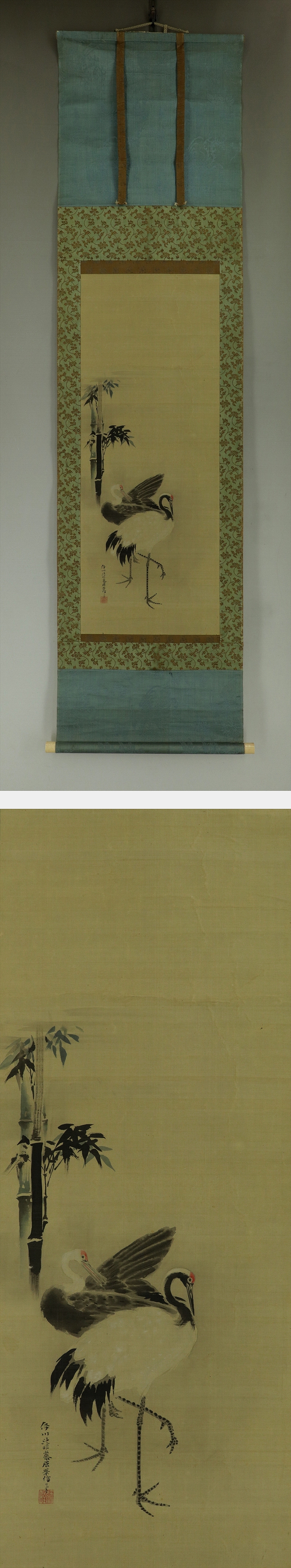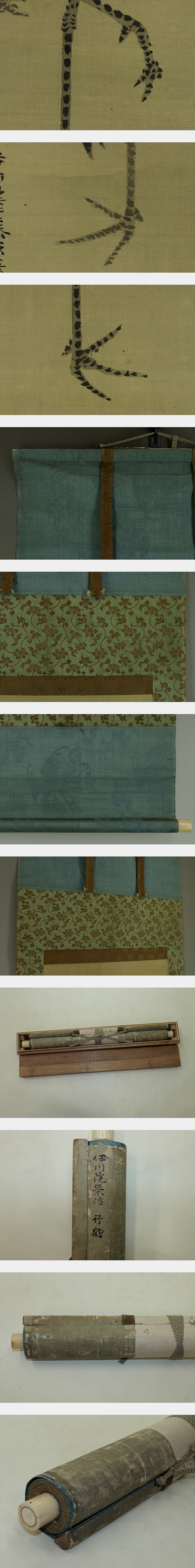 | №2303044【真作】狩野伊川院【竹鶴図】◆絹本◆合箱◆掛軸 | |