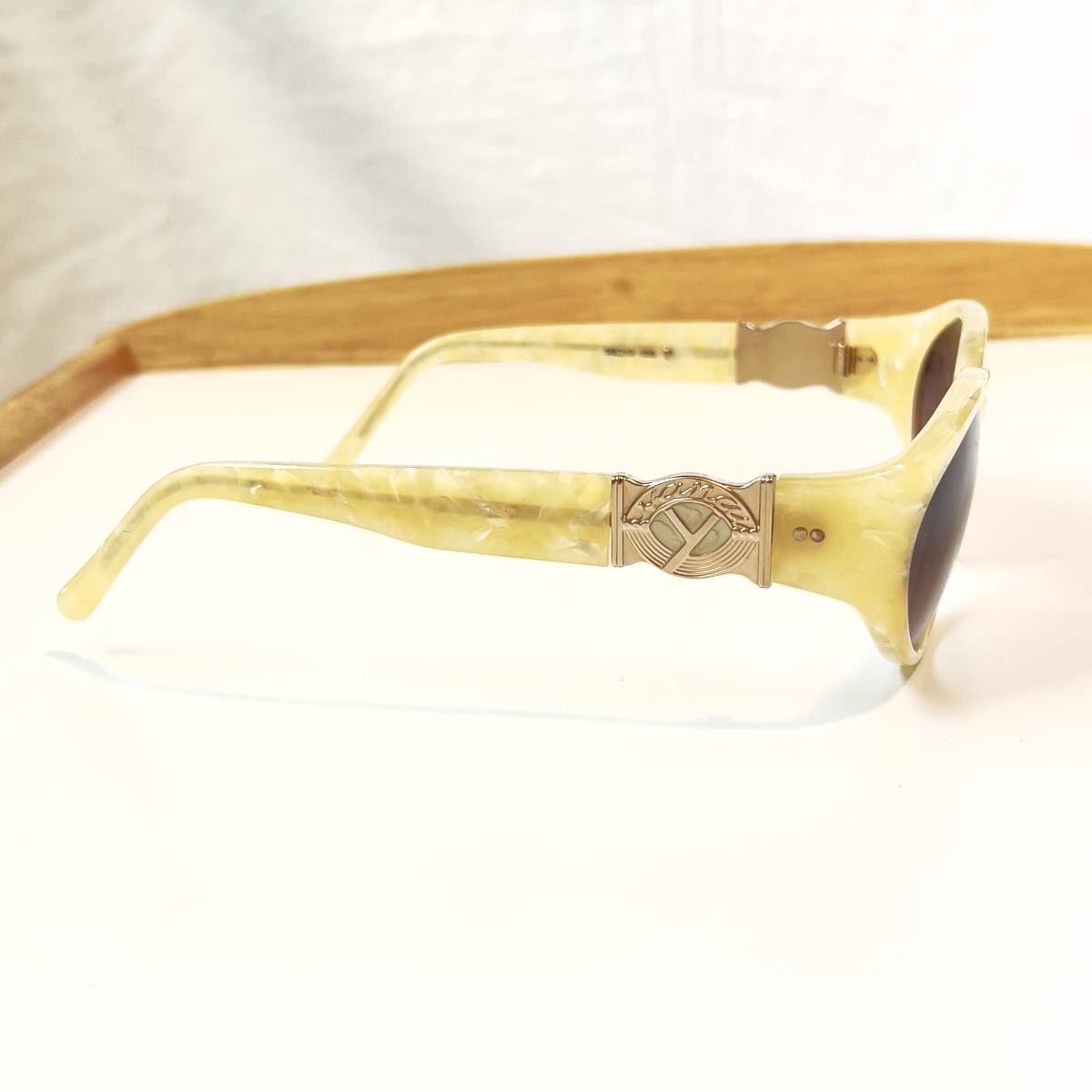 ◆YUKIKO HANAI ユキコハナイ サングラス サイド装飾金具 マーブルホワイト系 eyewear アイウェア 女性用 レディース ハナイユキコ
